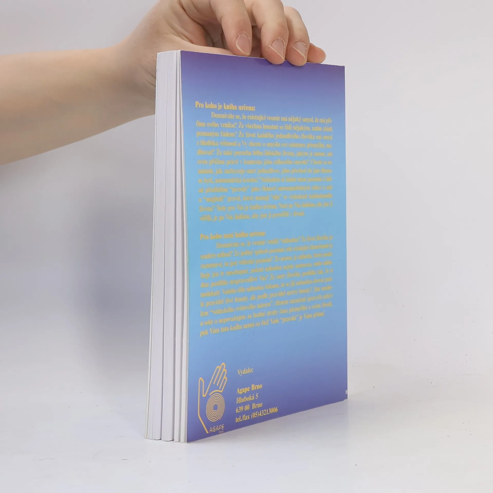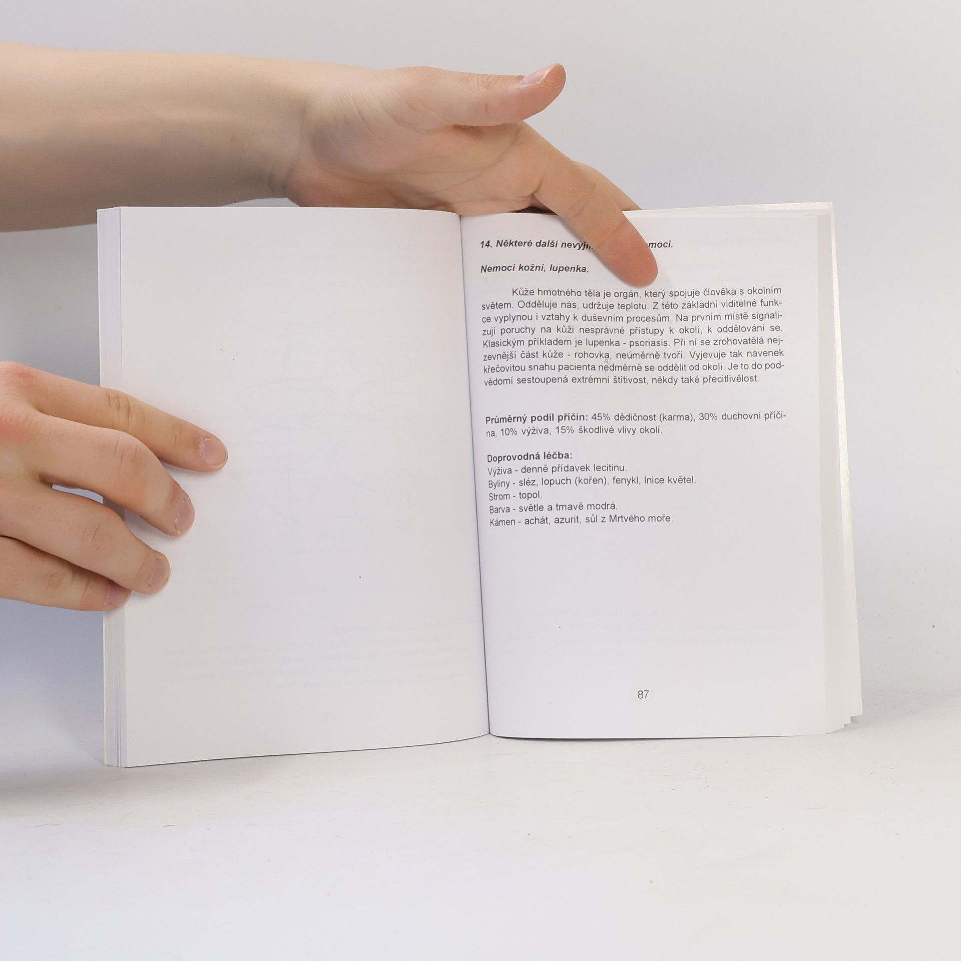 Současná medicína sice detailně popíše tělo člověka a průběh procesů nemocí, není však schopna odpovědět, proč člověk žije a proč je nemocen. Těmito otázkami se mohou zabývat jen ty obory, jejichž předmětem poznání jsou dimenze bytí, které byly ještě před vznikem hmotného. Tato dimenze je označována jako duchovní a základním způsobem jejího nazírání na veškeré dění je z hlediska věčnosti Knih, popisujících duchovní příčiny nemocí, je mnoho. Mnohé vyšly i u nás v překladu. Za nejlepší je možné jmenovat Dethlefsenovu „Nemoc jako cestu“ a Lazarevovu „Diagnostiku karmy“. Avšak žádná z těchto knih, které se ve světě a u nás tímto tématem zabývají, neobsahuje to, co obsahuje navíc tato kniha: praktický návod na východisko ze situace, to jest meditační modlitbu – mantru, zaměřenou na neutralizaci špatného duchovního směřování člověka, které zmíněnou nemoc vyvolalo. Tato mantra je vypsána vždy pod vyzařujícími obrázky, které jsou v knize uvedeny pro většinu hlavních nemocí. Její prožití a stálé opakování časem zneutralizuje v našem podvědomí i nadvědomí vlastní duchovní příčiny nemocí, nemoc přestane dostávat vadné impulsy ducha, špatný směr myšlení vyhasne. Nemoc se vyhojí v duši a následně i na těle. Metody léčení obrázky a meditační modlitbou se nijakým způsobem nekříží s tradiční medicínou. Je to rozšíření léčby o duchovní úroveň.... celý text