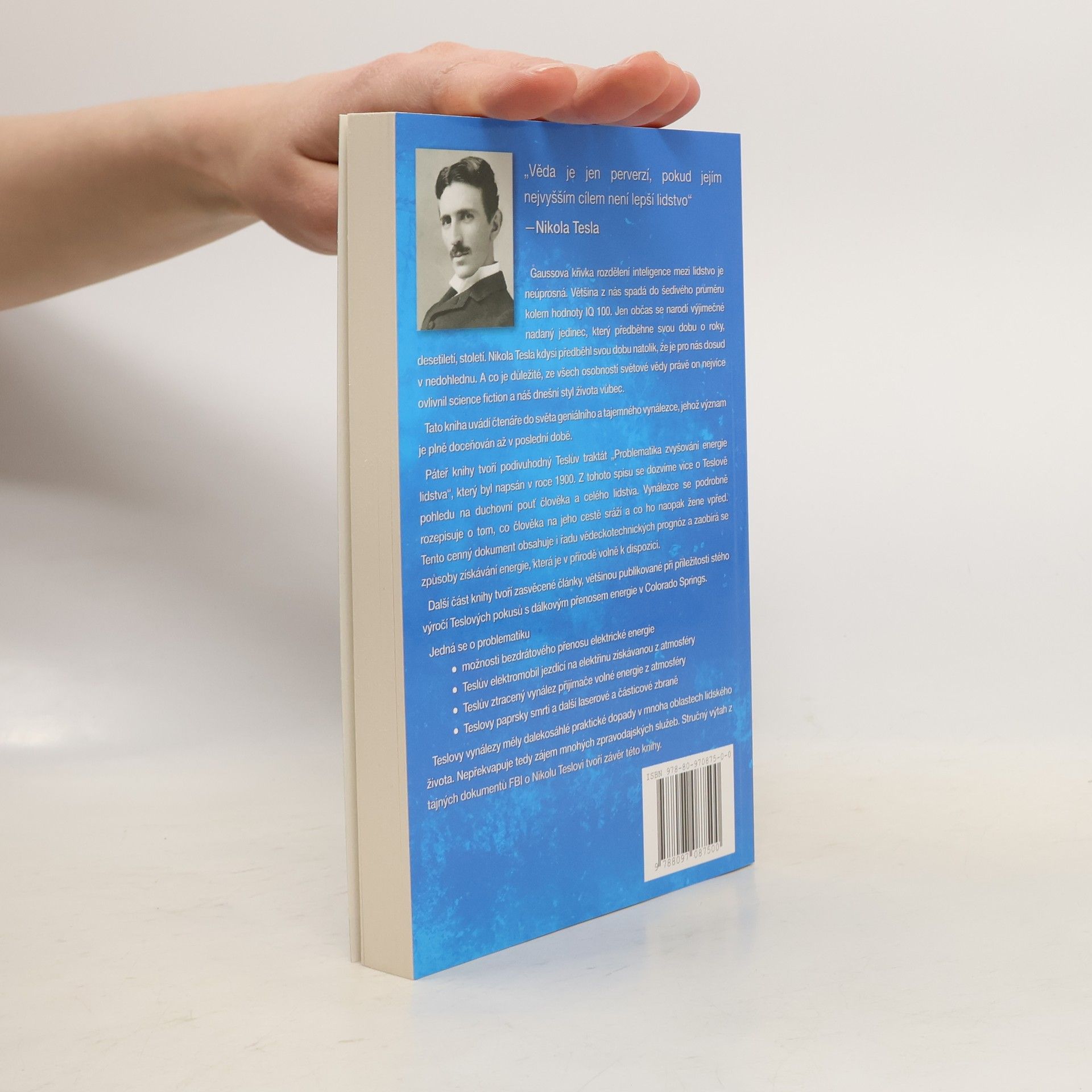 Páteř knihy tvoří traktát „Problematika zvyšování energie lidstva“ z roku 1900. Dozvíme se o Teslově pohledu na duchovní pouť člověka a celého lidstva. Dokument obsahuje i řadu vědeckotechnických prognóz a zaobírá se způsoby získávání energie, která je v přírodě volně k dispozici. Další část knihy tvoří články s problematikou: možnosti bezdrátového přenosu el. energie; Teslův elektromobil jezdící na elektřinu získávanou z atmosféry; Teslův ztracený vynález přijímače volné energie z atmosféry; Teslovy paprsky smrti a další laserové a částicové zbraně. Stručný výtah z tajných dokumentů FBI o Nikolu Teslovi tvoří závěr této knihy.