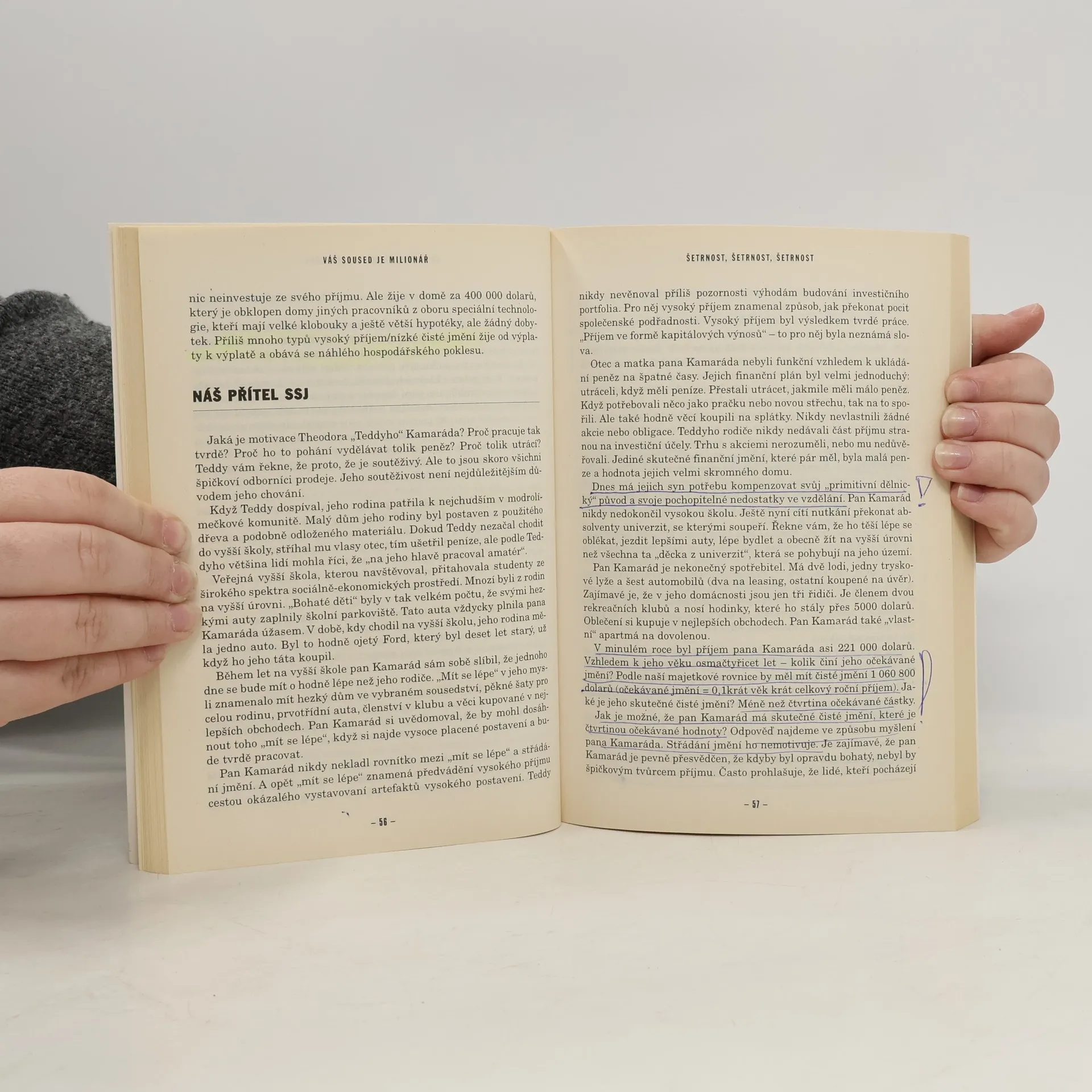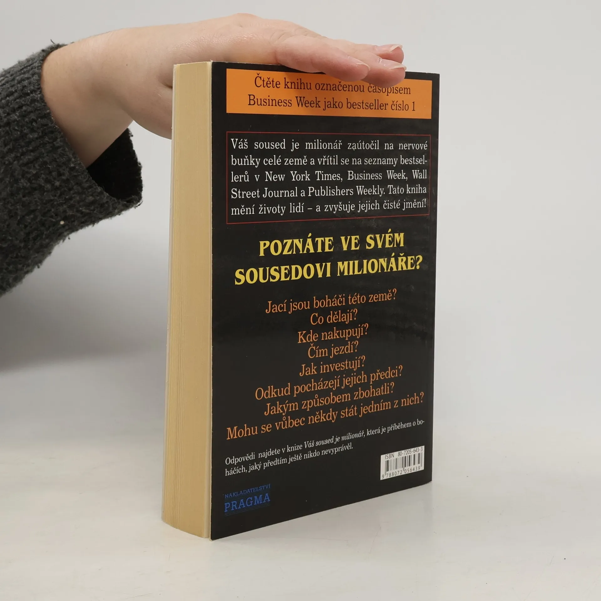 Váš soused je milionář zaútočil na nervové buňky celé země a vřítil se na seznamy bestsellerů v New York Times, Business Week, Wall Street Journal a Publishers Weekly. Tato kniha mění život lidí - a zvyšuje jejich čisté jmění! Jací jsou boháči této země? Co dělají? Kde nakupují? Čímjezdí? Jak investují? Odkud pocházejí jejich předci? Jakým způsobem zbohatli? Mohu se vůbec někdy stát jedním z nich? Odpovědi najdete v knize Váš soused je milionář, která je příběhem o boháčích, jaký předtím ještě nikdo nevyprávěl.