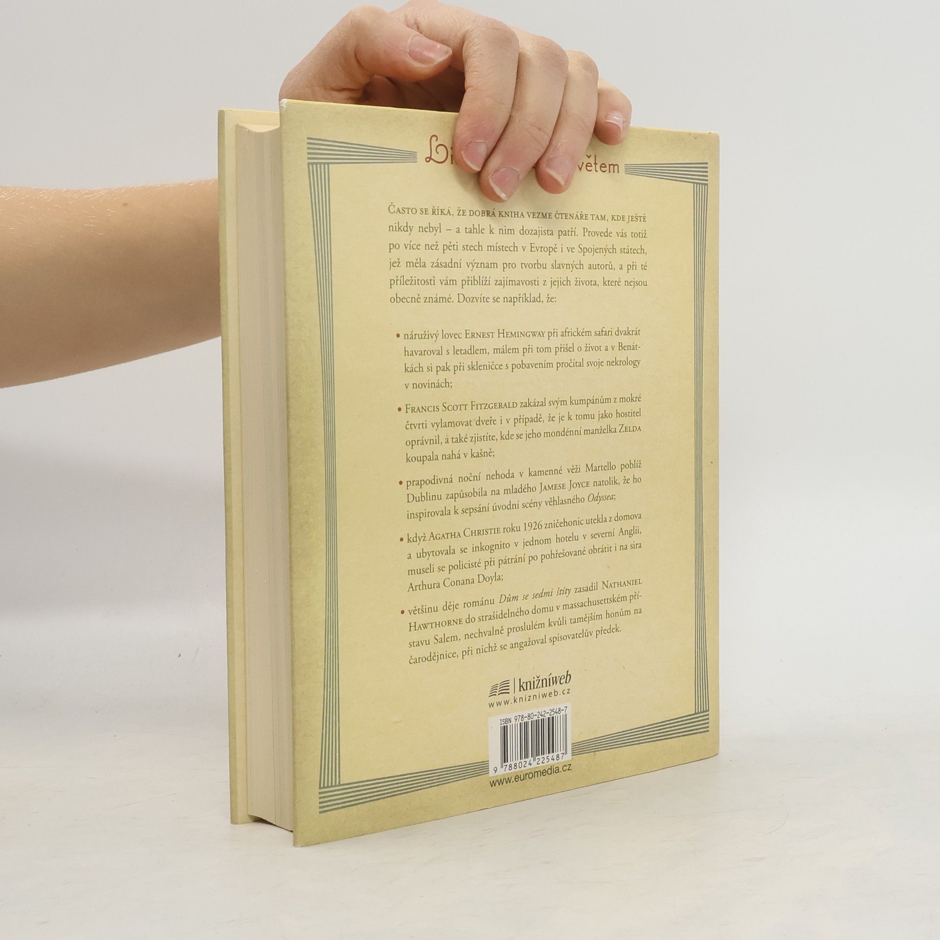 Často se říká, že dobrá kniha vezme čtenáře tam, kde ještě nikdy nebyl, a tahle k nim určitě patří. Milovníky literatury totiž provede po více než pěti stech místech v Evropě a USA, jež měla zásadní význam pro tvorbu slavných autorů. Chcete-li se něco dozvědět o krajích, kde pobývali a v nichž čerpali inspiraci vaši oblíbení spisovatelé a básníci, tento průvodce by neměl ve vaší knihovně chybět. Bude vám dobrým společníkem nejen na cestách, ale i za poklidných večerů u domácího krbu.