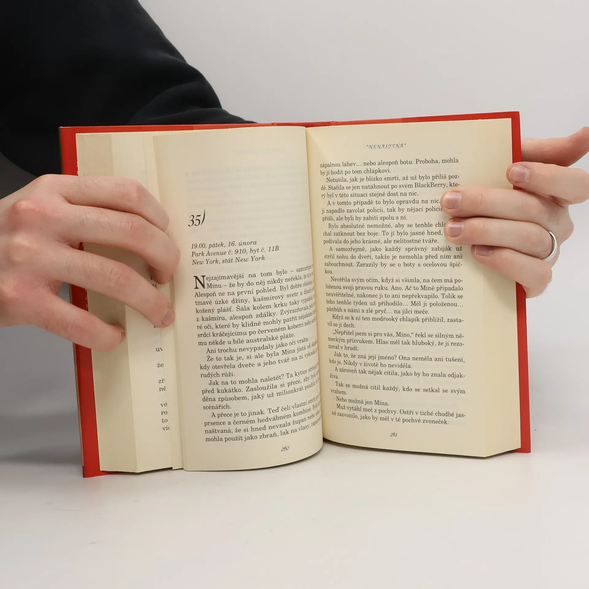 Nikdy neříkejte nikdy, a o upírech to platí dvojnásob... Mína Harperová, samostatná, talentovaná, ale zároveň i smutná a díky svému prazvláštnímu daru okamžitě odhalit, jakým způsobem a kdy člověk, který před ní stojí, zemře, dost osamělá, se podílí na vytváření scénáře pro nesmírně úspěšný seriál Nenasytná u jedné newyorské televizní stanice. Jednoho dne jí její neschopná, avšak velmi průbojná a bezohledná kolegyně sdělí, že vedení se rozhodlo seriál obohatit postavou upíra, podobně jako u konkurence. Mína je zděšena, protože její vztah k upírům je mírně řečeno odtažitý. Zanedlouho se však na večírku setkává s naprosto neodolatelným profesorem literatury Lucienem Antonescuem, vysokým, tajuplným brunetem, a od tohoto okamžiku si na nedostatek inspirace, co se upírů týče, rozhodně stěžovat nemůže! Úspěšná americká spisovatelka Meg Cabotová se v této knize svým nenapodobitelně originálním způsobem vyrovnává se záplavou upírských ság na dnešním knižním trhu.