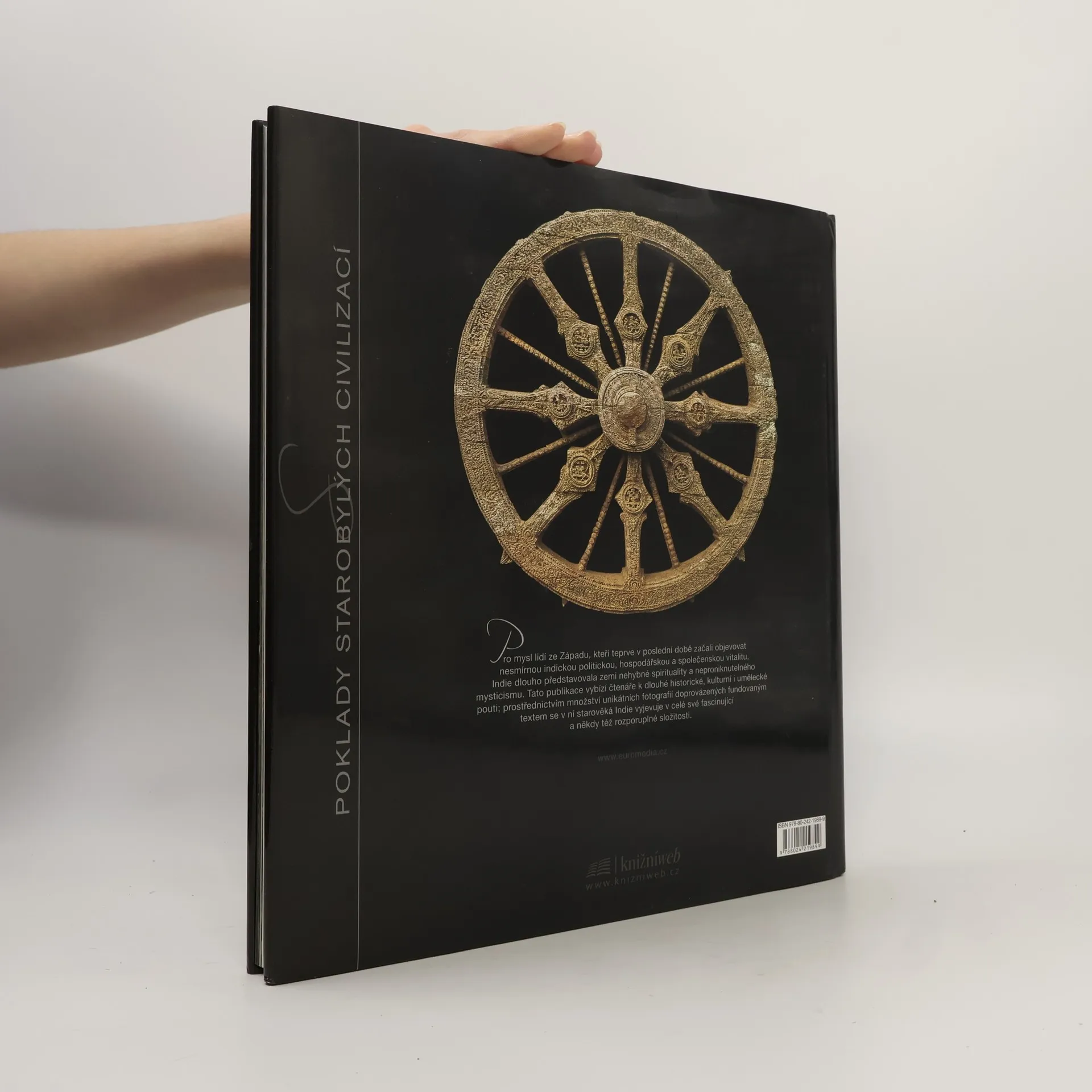 Tento svazek série Poklady starobylých civilizací předkládá chronologický nástin indických dějin od roku 2500 př. n. l. do roku 1192 n. l., kdy se nad rozsáhlými částmi indického území započala muslimská nadvláda. Nejznámější stránky indické civilizace jsou zde zasazeny do svého historického a kulturního kontextu a chronologicky pojatý text obsahuje i kapitoly věnovavé zvláštním tématům. Kniha vybízí čtenáře k dlouhé historické, kulturní i umělecké pouti; prostřednictvím množství unikátních fotografií doprovázených fundovaným textem se v ní starověká Indie vyjevuje v celé své fascinující a někdy též rozporuplné složitosti
