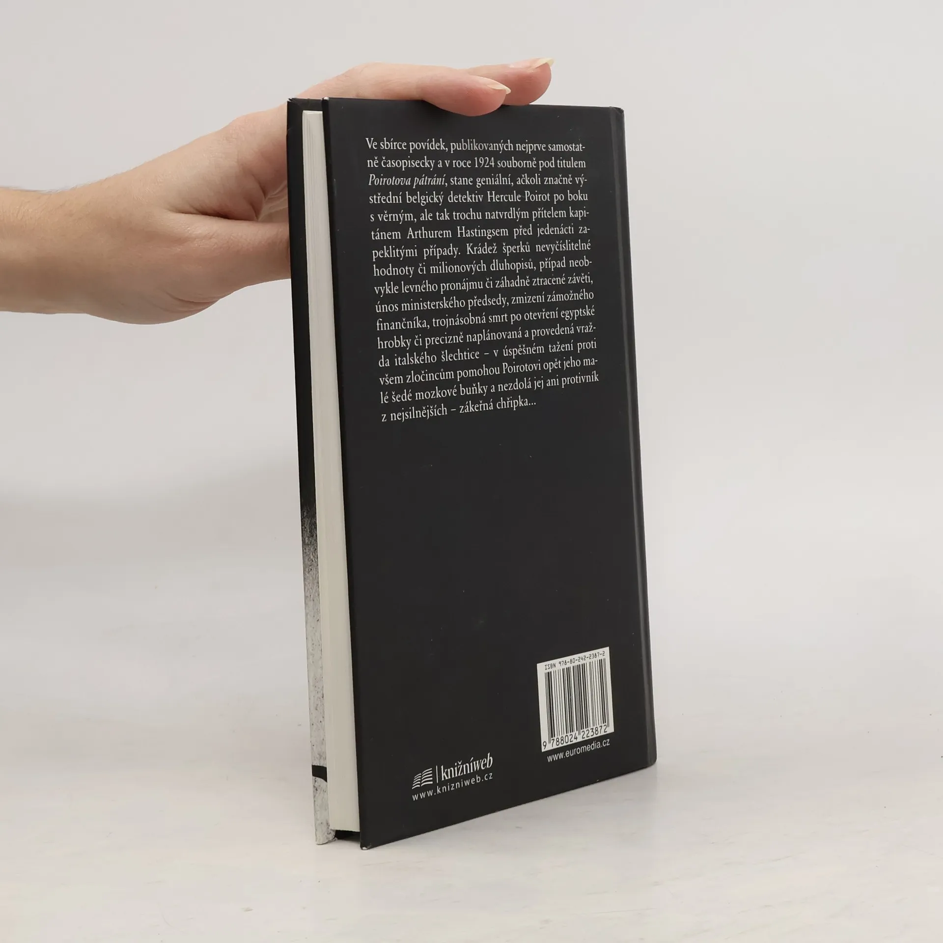 Do sbírky povídek pod titulem Poirotova pátrání zahrnula Agatha Christie jedenáct příběhů, v nichž belgický detektiv Hercule Poirot – za pomoci svých nezdolných šedých mozkových buněk a s věrným přítelem kapitánem Hastingsem po boku – úspěšně a s grácií sobě vlastní řeší mimo jiné krádeže šperků či milionových dluhopisů, případ ztracené závěti či levného bytu, únos ministerského předsedy nebo dobrodružství s egyptskou hrobkou. 2. vydání.