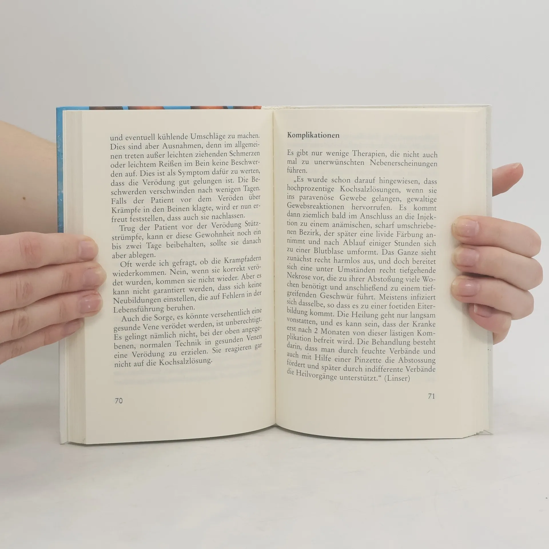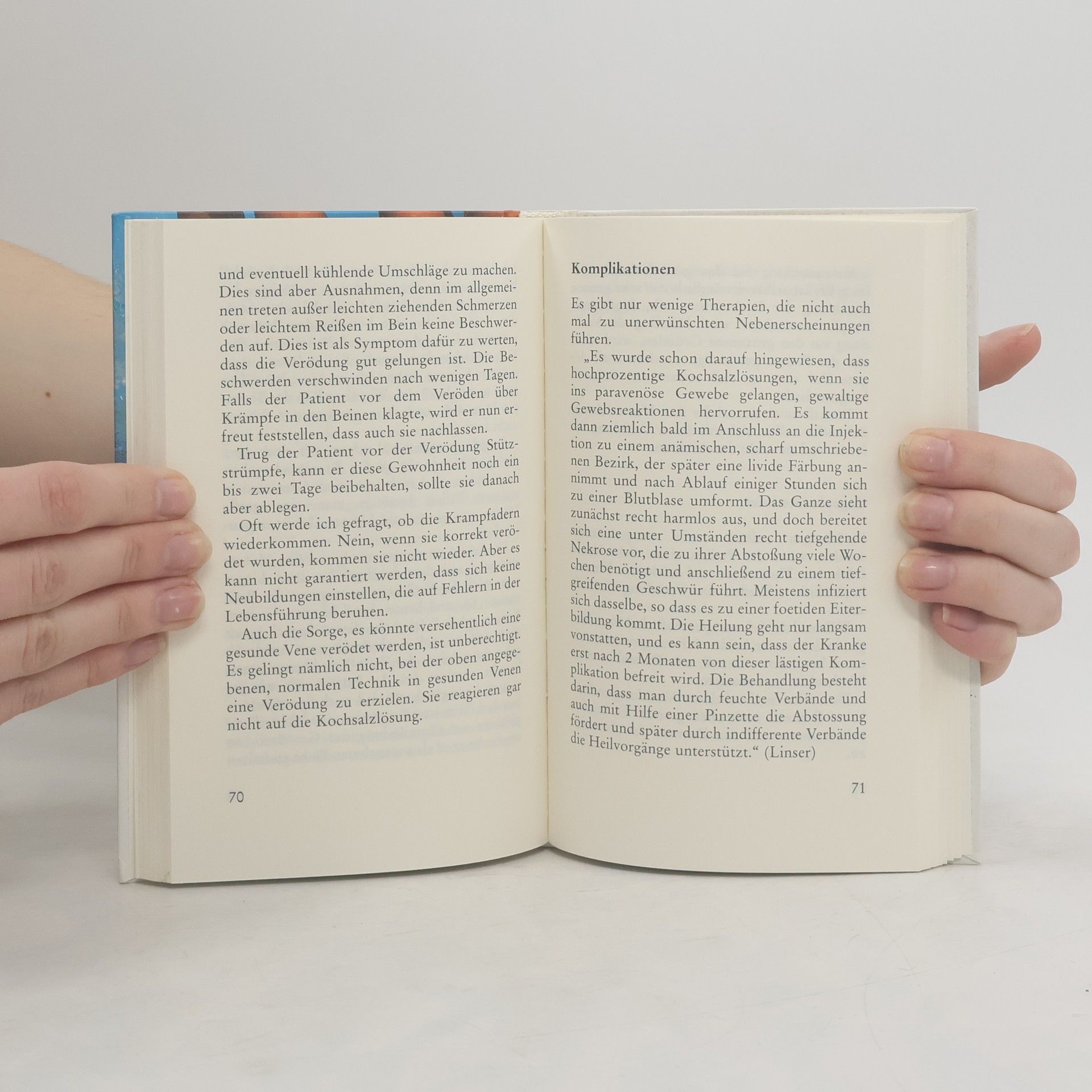 Zahllose Menschen haben Krampfadern. Jedes Jahr unterziehen sich Tausende von Patienten einer nicht ungefährlichen Operation, um ihre Krampfadern entfernen zu lassen. Es gibt jedoch eine bessere, unblutige, dauerhafte, ambulante Möglichkeit der Beseitigung, die heute an den Unis leider nicht mehr gelehrt wird. Dr. Bruker: „Seit der genialen Erfindung von Prof. Dr. Paul Linser, Krampfadern durch Injektion einer konzentrierten Kochsalzlösung zu beseitigen, ist die operative Entfernung der Krampfadern als Kunstfehler zu bezeichnen.“