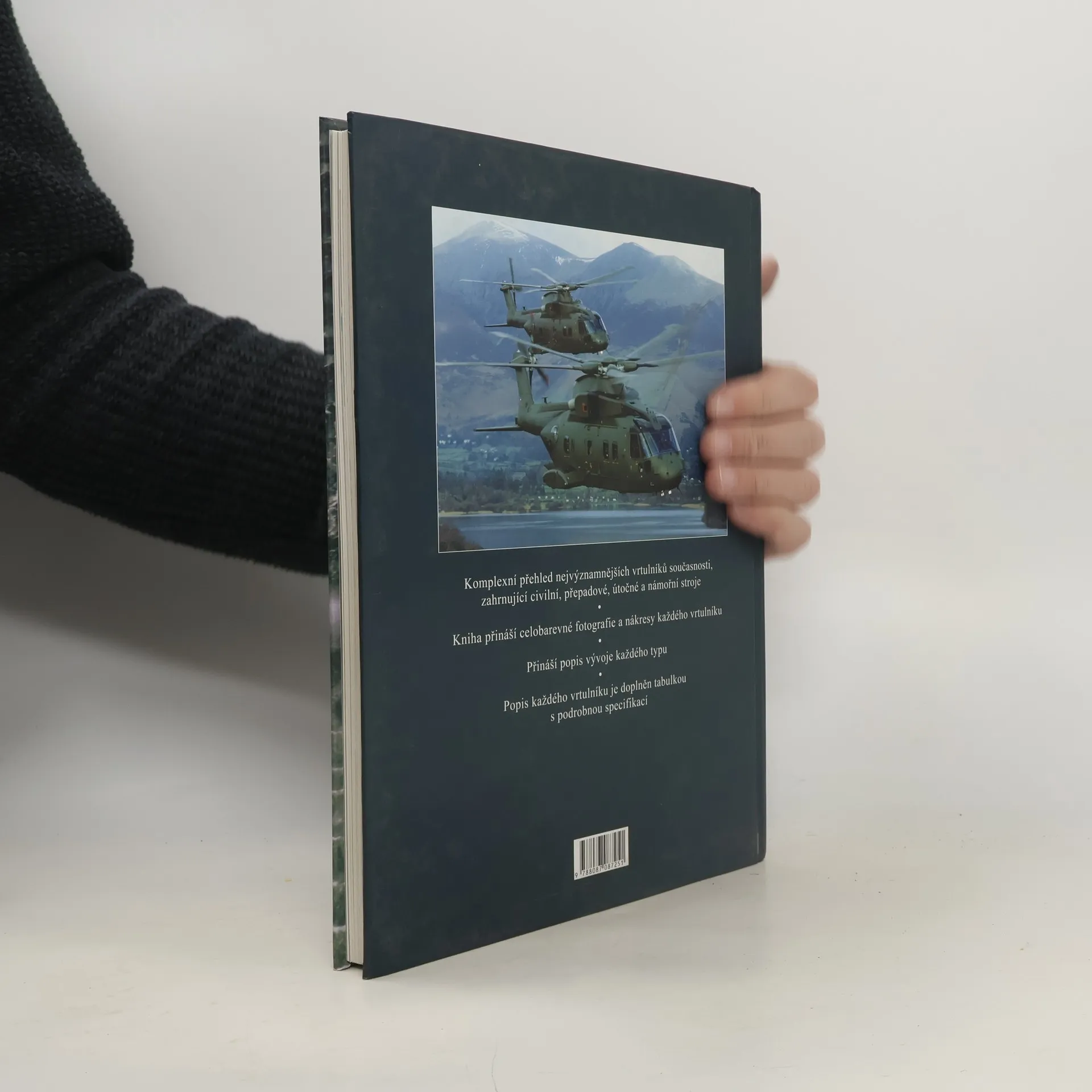 Kniha přibližuje nejen vysoce technicky vyspělé bojové vrtulníky, jako je americký Black Hawk nebo ruský stroj Mil Mi-24, ale i výborné a všestranné užitkové vrtulníky, například Bell 222. Přináší celou řadu informací o těchto fascinujících a neocenitelných strojích. Pokrývá každý významnější dnes používaný stroj a uvádí specifikace jednotlivých typů. Text doplňuje více než 500 fotografií a ilustrací. Kniha je bohatým zdrojem informací pro všechny zájemce o moderní vrtulníky.