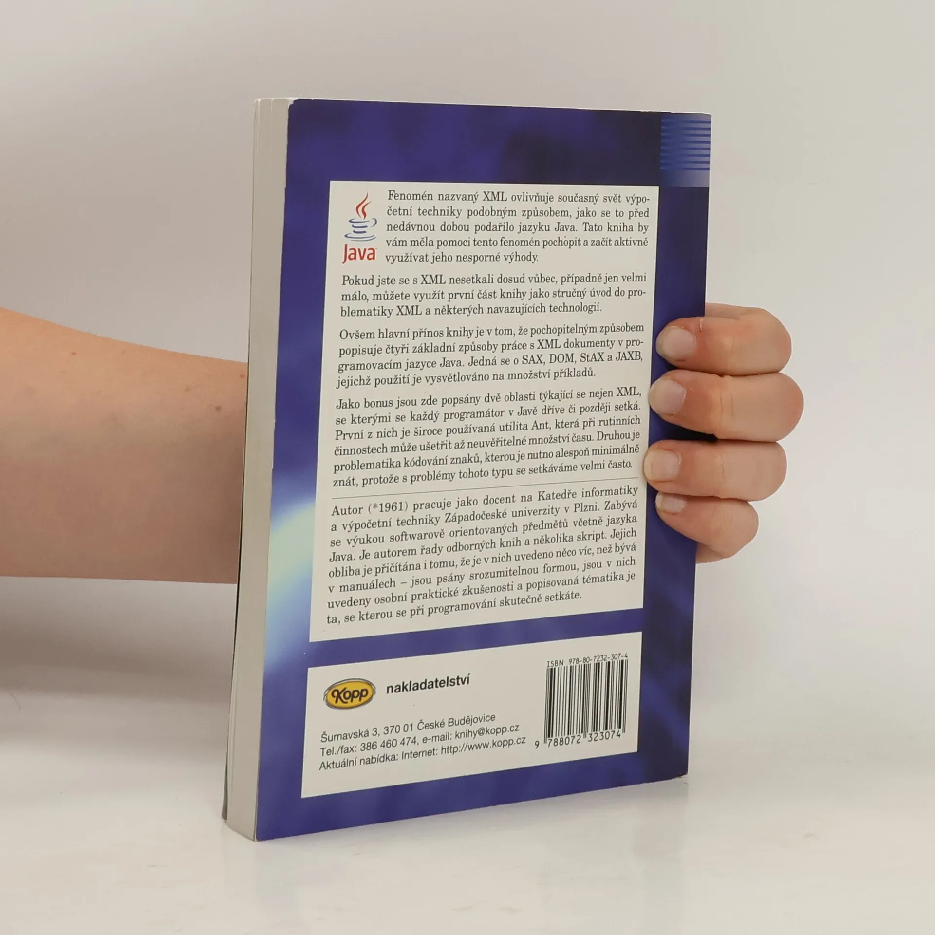 Fenomén nazvaný XML ovlivňuje současný svět výpočetní techniky podobným způsobem, jako se to před nedávnou dobou podařilo jazyku Java. Tato kniha by vám měla pomoci tento fenomén pochopit a začít aktivně využívat jeho nesporné výhody. Pokud jste se s XML nesetkali dosud vůbec, případně jen velmi málo, můžete využít první část knihy jako stručný úvod do problematiky XML a některých navazujících technologií. Ovšem hlavní přínos knihy je v tom, že pochopitelným způsobem popisuje čtyři základní způsoby práce s XML dokumenty v programovacím jazyce Java. Jedná se o SAX, DOM, StAX a JAXB, jejichž použití je vysvětlováno na množství příkladů. Jako bonus jsou zde popsány dvě oblasti týkající se nejen XML, se kterými se každý programátor v Javě dříve či později setká. První z nich je široce používaná utilita Ant, která při rutinních činnostech může ušetřit až neuvěřitelné množství času. Druhou je problematika kódování znaků, kterou je nutno alespoň minimálně znát, protože s problémy tohoto typu se setkáváme velmi často.