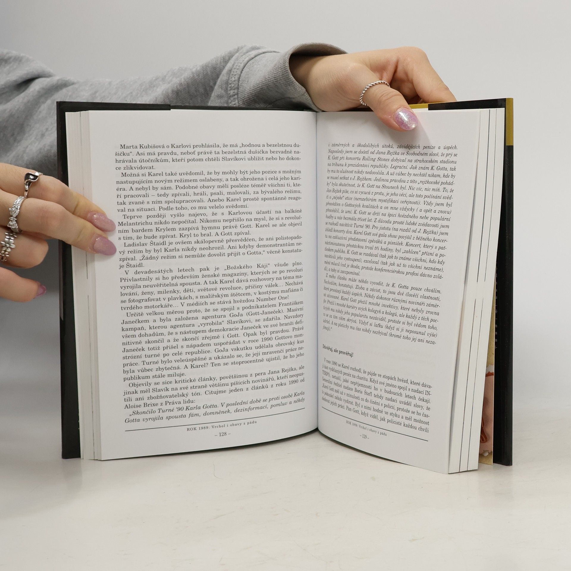 Na 372 stranách doplněných čtyřmi obrazovými vložkami, paralelně ilustrujícími nejexponovanější údobí zpěvákova života, máme možnost vůbec poprvé v úhrnu pěti desetiletí poodhalit tajemství závratné kariéry. V mnohavrstevnaté výpovědi desítek svědků a z nejrůznějších úhlů pohledu současníků se dovídáme nejen řadu pikanterií a intimit, z lidské stránky přibližujících fenomén Gott, ale současně máme možnost proniknout k podstatě zpěvákovy charismatické osobnosti a získat tak klíč k pochopení jeho neochabující obliby a až neuvěřitelně stále stoupající popularity. Titul vychází u příležitosti 65. narozenin Karla Gotta.