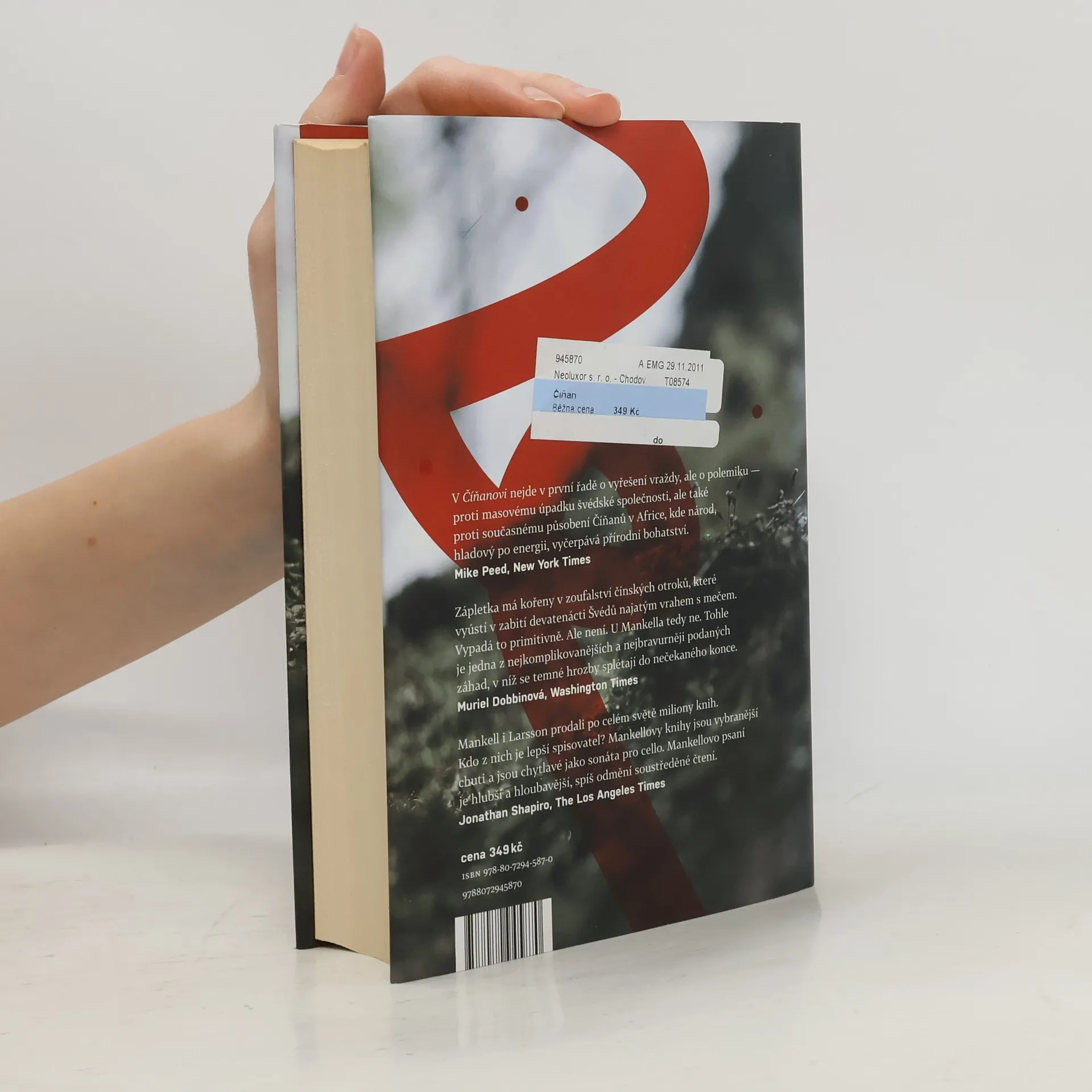 Úspěšný politický thriller Jednoho chladného lednového dne je v ospalé vesnici na severu Švédska nalezena oběť brutální vraždy. Celá víska je hrozivě klidná a opuštěná. A tiché domky vzápětí vydají své tajemství: zločin, jaký švédská historie nepamatuje. Když se o masakru dočte soudkyně Birgitta Roslinová, uvědomí si, že ji s místem pojí rodinná vazba, a rozhodne se pátrat na vlastní pěst. Jejími jedinými vodítky jsou přitom deník z 19. století a červená stuha nalezená v nedalekém lese. Birgitta postupně odkrývá mezinárodní síť korupce a s ní i příběh pomsty, který sahá víc než sto let do minulosti a propojuje Čínu a Ameriku 60. let 19. století s moderním Pekingem a Mozambikem. Vše spěje k šokujícímu rozuzlení v čínské čtvrti v Londýně. Číňan je strhující politický thriller a zároveň důmyslně propracovaná detektivka. Henning Mankell jako jeden z nejčtenějších švédských spisovatelů současnosti bývá srovnáván se svým krajanem Stiegem Larssonem.