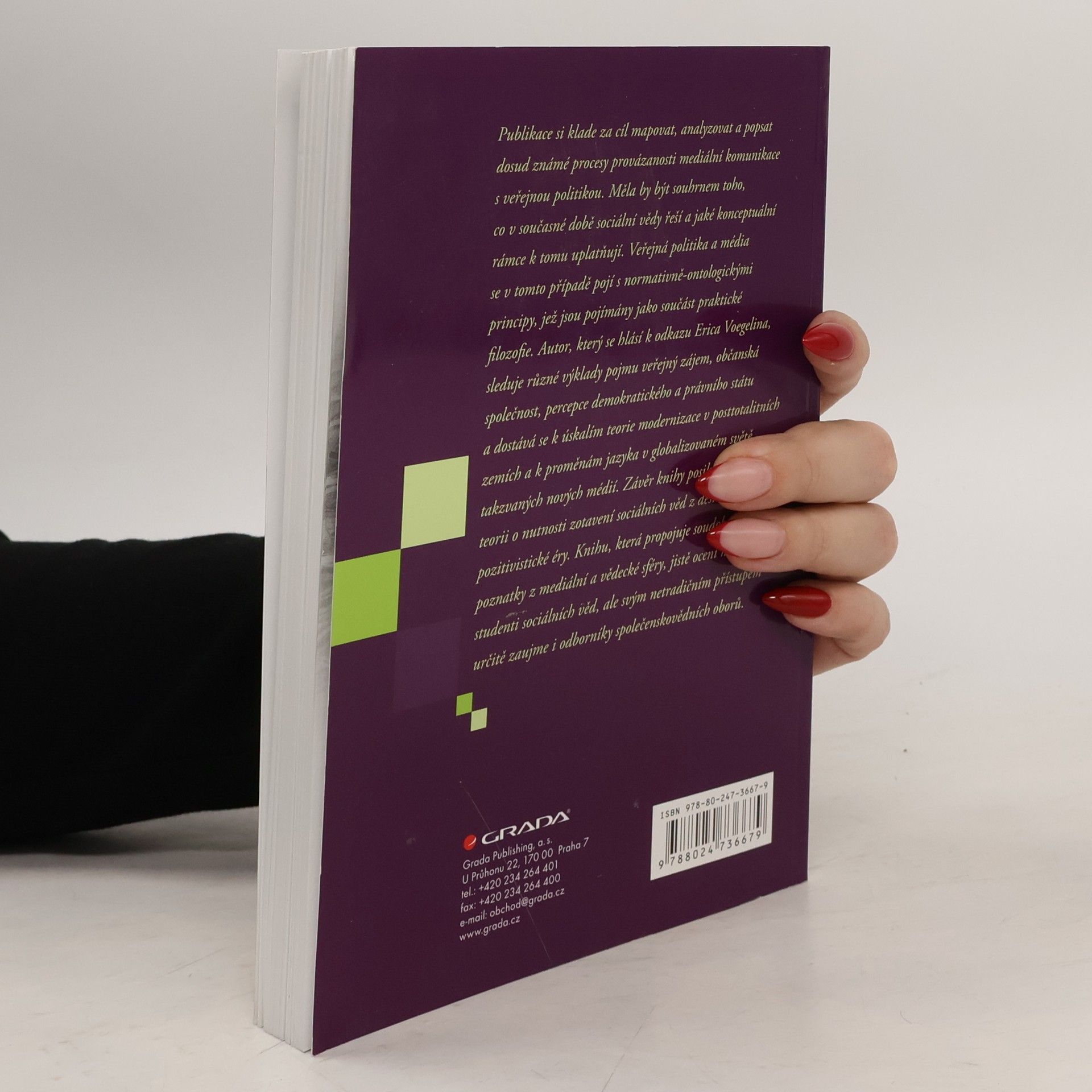 Publikace si klade za cíl mapovat, analyzovat a popsat dosud známé procesy provázanosti mediální komunikace s veřejnou politikou. Měla by být souhrnem toho, co v současné době sociální vědy řeší a jaké konceptuální rámce k tomu uplatňují. Veřejná politika a média se v tomto případě pojí s normativně-ontologickými principy, jež jsou pojímány jako součást praktické filozofie. Autor, který se hlásí k odkazu Erica Voegelina, sleduje různé výklady pojmu veřejný zájem, občanská společnost, percepce demokratického a právního státu a dostává se k úskalím teorie modernizace v posttotalitních zemích a k proměnám jazyka v globalizovaném světě takzvaných nových médií. Závěr knihy posiluje Voegelinovu teorii o nutnosti zotavení sociálních věd z destrukce pozitivistické éry. Knihu, která propojuje soudobé poznatky z mediální a vědecké sféry, jistě ocení nejen studenti sociálních věd, ale svým netradičním přístupem určitě zaujme i odborníky společenskovědních oborů.