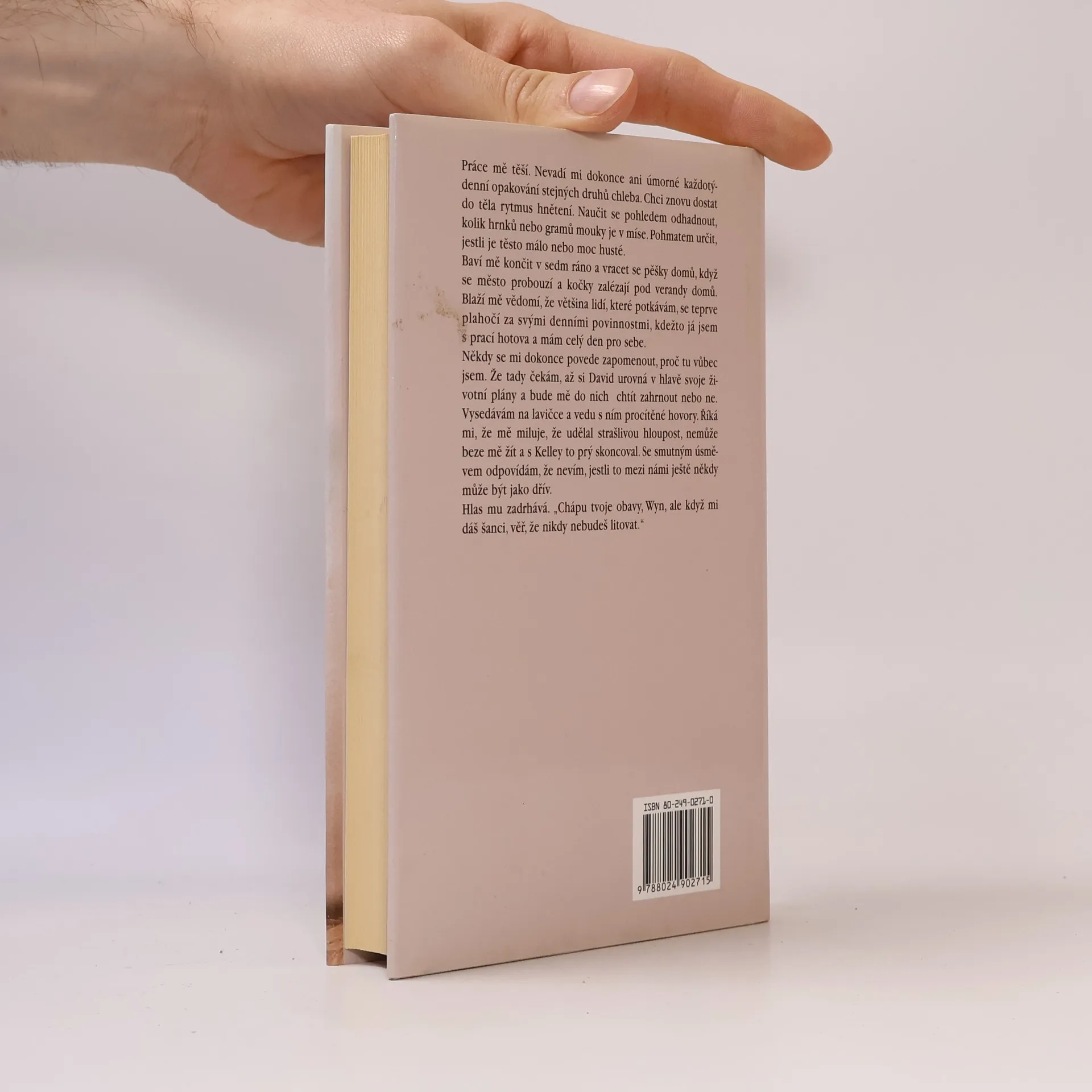 Román o mladé ženě, kterou neblahé okolnosti přimějí vzít osud do vlastních rukou a začít úplně nový život. Ústřední hrdinka, středoškolská učitelka literatury, se se svým budoucím mužem seznámí na jedné oslavě. Během krátké doby se vezmou a ona kvůli němu opustí školu, aby se zcela mohla věnovat své nové úloze: být mu dokonalou ženou a reprezentantkou ve společnosti. Po sedmi letech pro ni celkem spokojeného života jí náhle manžel oznámí, že ho vše svazuje a že by nějaký čas neměli žít spolu. Žena jede pro radu ke své přítelkyni a u ní objeví příjemnou pekárnu, jejíž majitelka jí nabídne zaměstnání. Pečení chleba a pečiva je totiž její velikou zálibou od doby, kdy pobývala v Paříži. Když dostane tuto nabídku, uvědomí si, že by tak mohla najít nový smysl života i sebe samu a to jí pomůže k rozhodnutí, aby problém svého manželství konečně nějak vyřešila a začala znovu žít naplno a jinak.