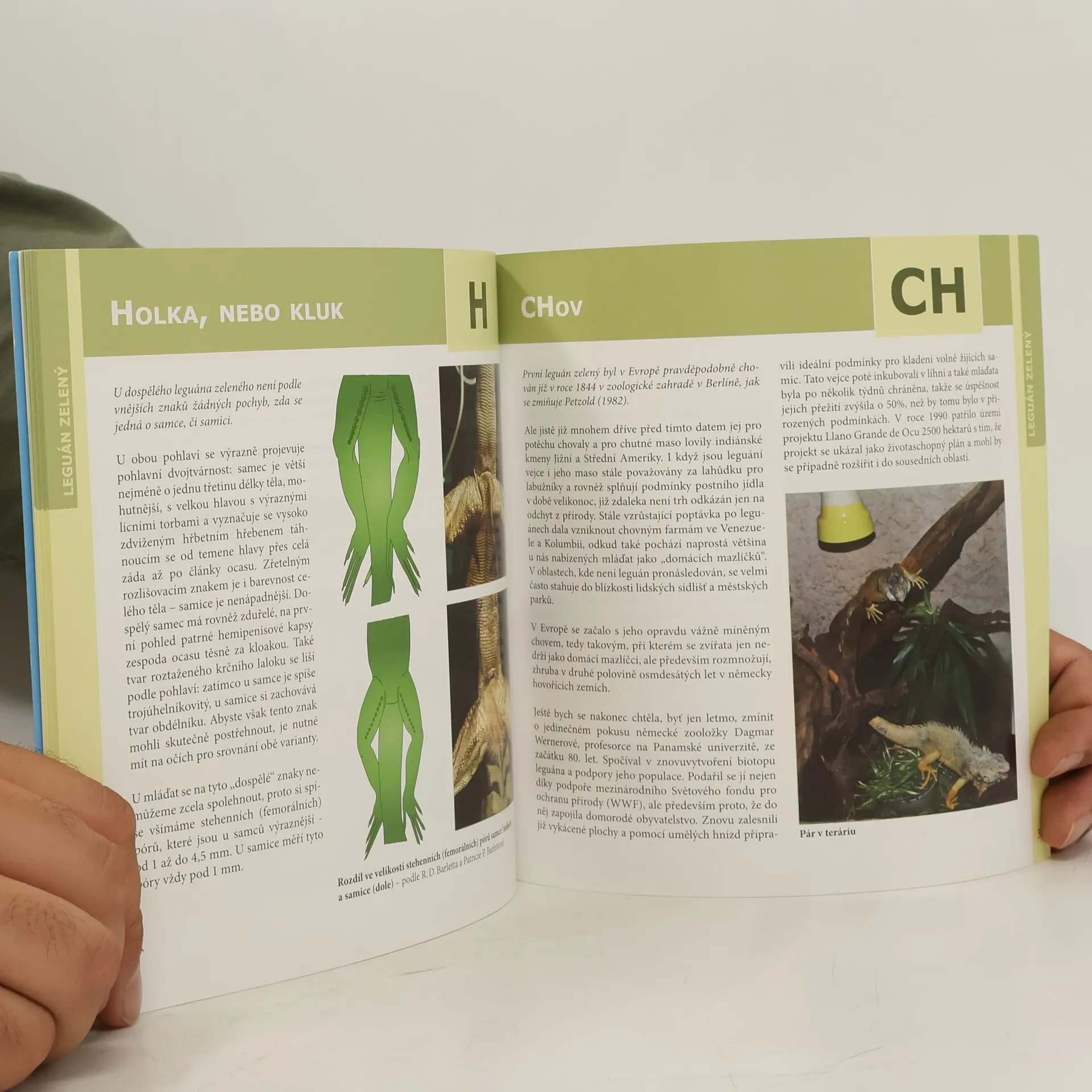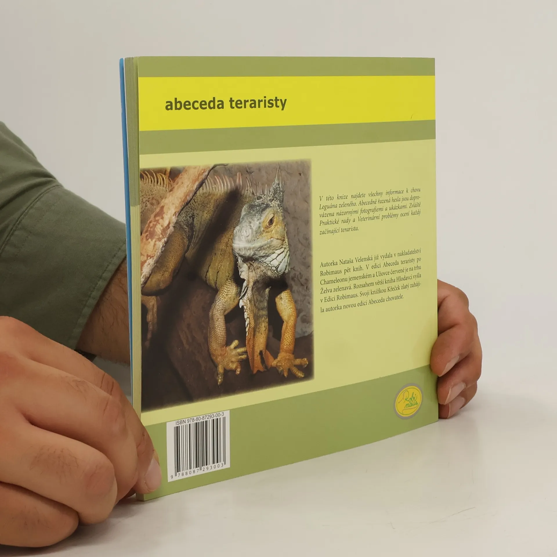 Kniha obsahuje chovatelství, chov, druhy leguánů, výživu, rozmnožování a teraristiku. Paní Nataša Velenská, která má na starosti plazy v pražské ZOO, napsala další knížku věnovanou jednomu z oblíbených terarijních zvířat leguánu zelenému. O tomto druhu u nás samostatná publikace zatím v češtině nevyšla. Leguáni vůbec nejsou nenáročná zvířata, vyžadují hodně péče a v dospělosti potřebují velký životní prostor. Mají nároky na určitou vlhkost, rádi plavou, potřebují kvalitní zelené krmení a zdroj tepla a UV záření. Aby se dali ochočit, vyžadují pravidelnou pozornost. Ale více informací naleznete uvnitř této knížky. Kniha je přehledně rozdělena do kapitol, je zde věnována pozornost základní péči, rozmnožování, chovu mláďat, možným komplikacím v chovu, vztahu k člověku, biologii druhu atd... Své si zde najdou začátečníci i zkušení chovatelé.