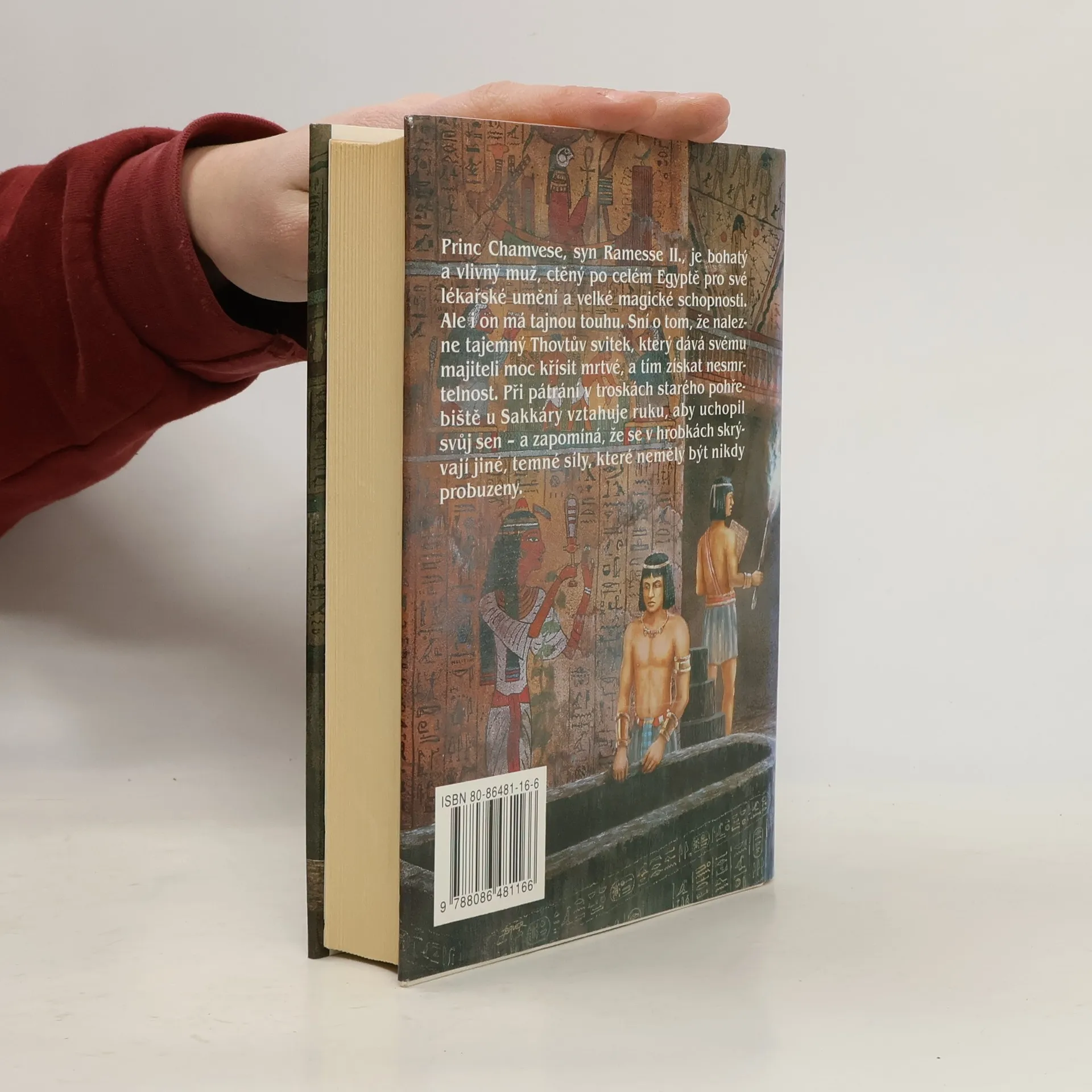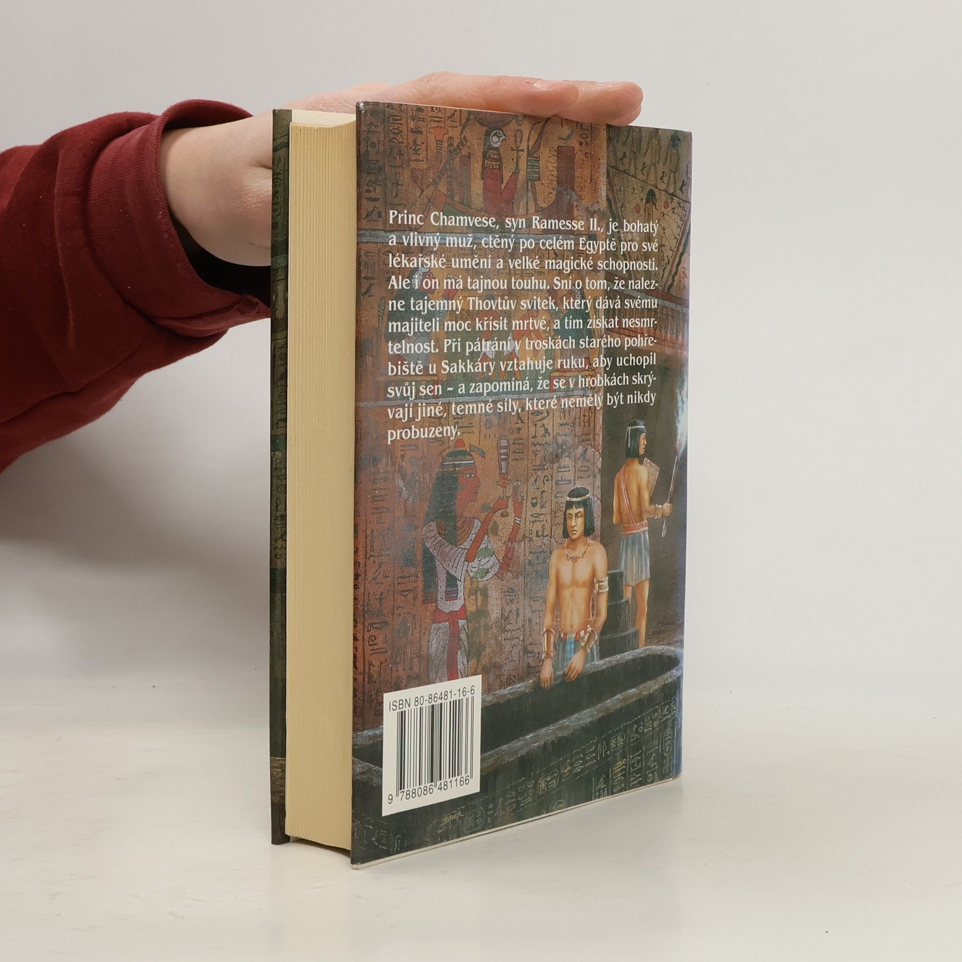 Román ze starověkého Egypta s hororovými prvky od známé kanadské autorky. Autorka použila starou egypskou legendu a na jejím základě napsala napínavý román. Hlavním hrdinou je princ Chamvese, syn Ramesse II.,kterému se podaří nalézt tajemný Thovtův svitek, který dává svému majiteli moc křísit mrtvé. Chamvese má možnost svitek zničit a žít dál klidný život v přepychu, ale nedokáže to a tím dá průchod působení nadpřirozených sil, se kterými není radno si zahrávat.