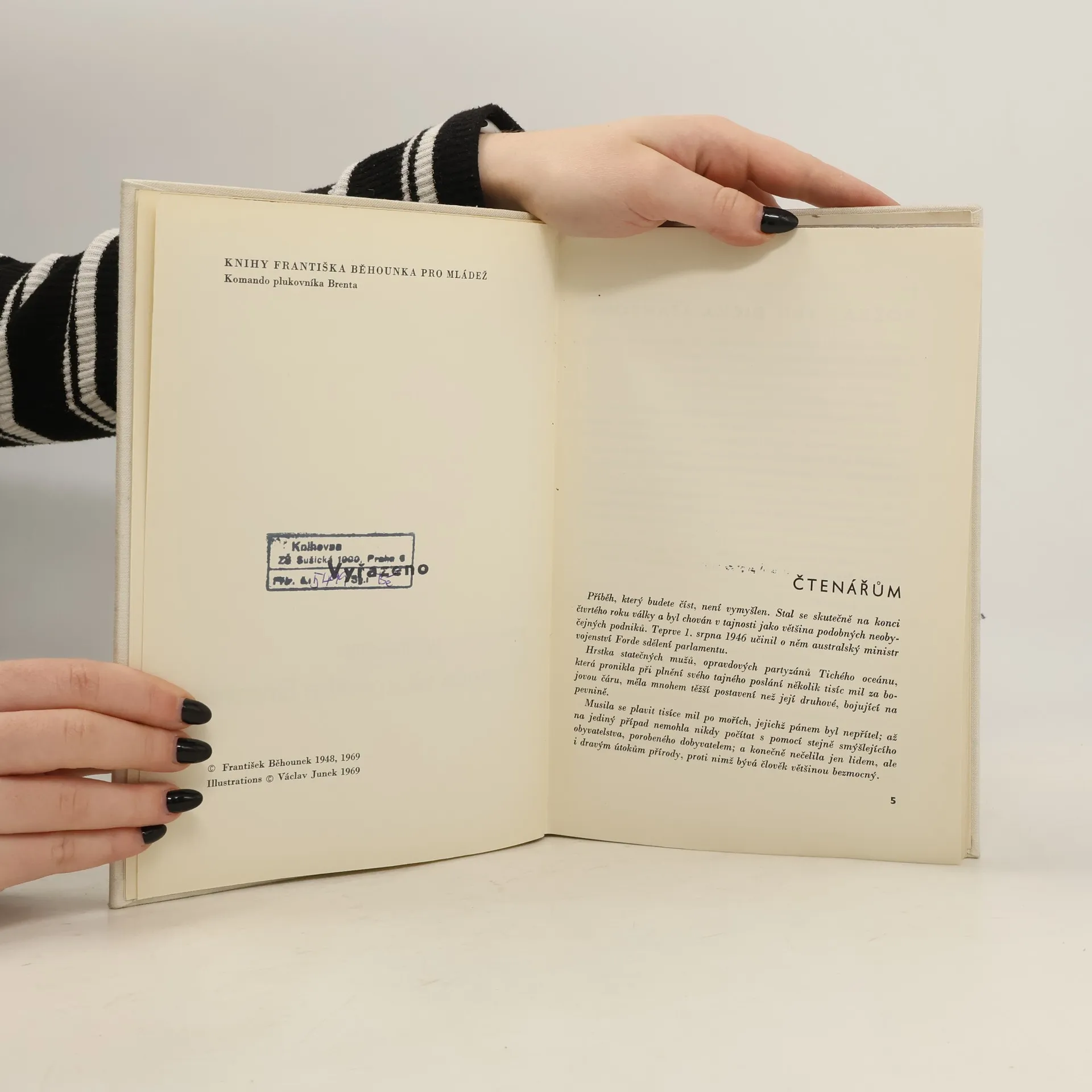 Napsáno podle skutečné události. V roce 1944 hrstka statečných komandos pod vedením pl. Brenta pronikla do cizího nepřátelského území, aby splnila tajné poslání. O akci se svět dozvěděl až v roce 1946, kdy australský ministr vojenství Forde sdělil parlamentu tuto zprávu. Na jejím podkladě F. Běhounek napsal tuto knihu Ilustroval Václav Junek, vyšlo v edici KFB