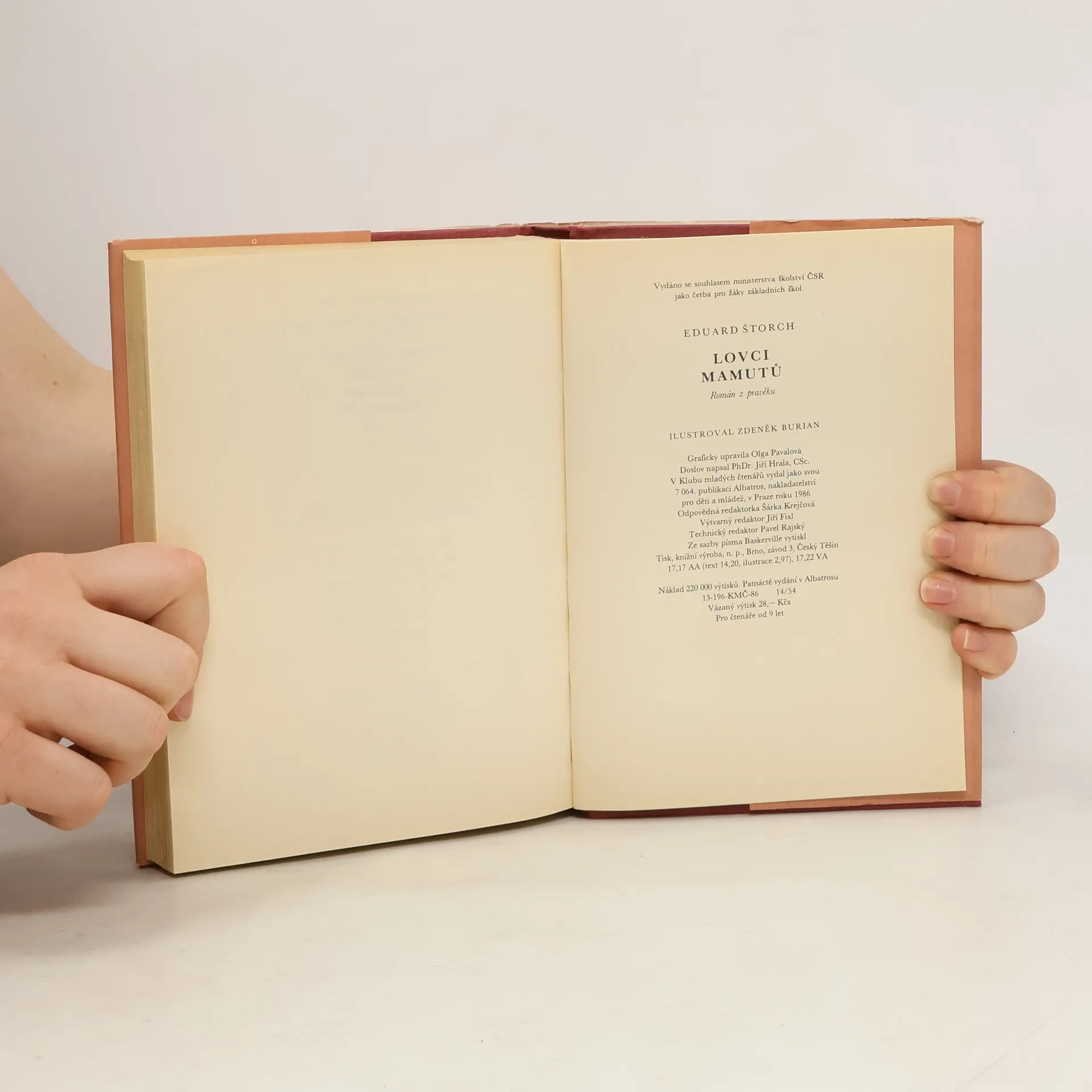 Na podkladě světově významných archeologických nálezů v českých zemích, zejména na Moravě, vyvolává autor formou románu pro mládež obraz naší přírody a života prvotně pospolné společnosti v době kamenné před dvaceti až třiceti tisíci lety. Tenkrát byla vypuzena z věstonického sídliště tlupa diluviálních lovců, která za neustálých bojů s hladem, přírodou a nepřáteli dospěje do konečného sídla na místech dnešní Libně. 19. vydání, v Albatrosu 11.
