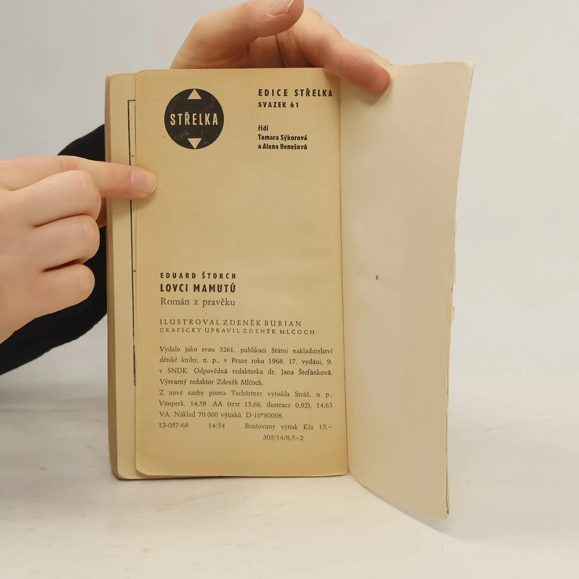 Na podkladě světově významných archeologických nálezů v českých zemích, zejména na Moravě, vyvolává autor formou románu pro mládež obraz naší přírody a života prvotně pospolné společnosti v době kamenné před dvaceti až třiceti tisíci lety. Tenkrát byla vypuzena z věstonického sídliště tlupa diluviálních lovců, která za neustálých bojů s hladem, přírodou a nepřáteli dospěje do konečného sídla na místech dnešní Libně. 13-057-68
