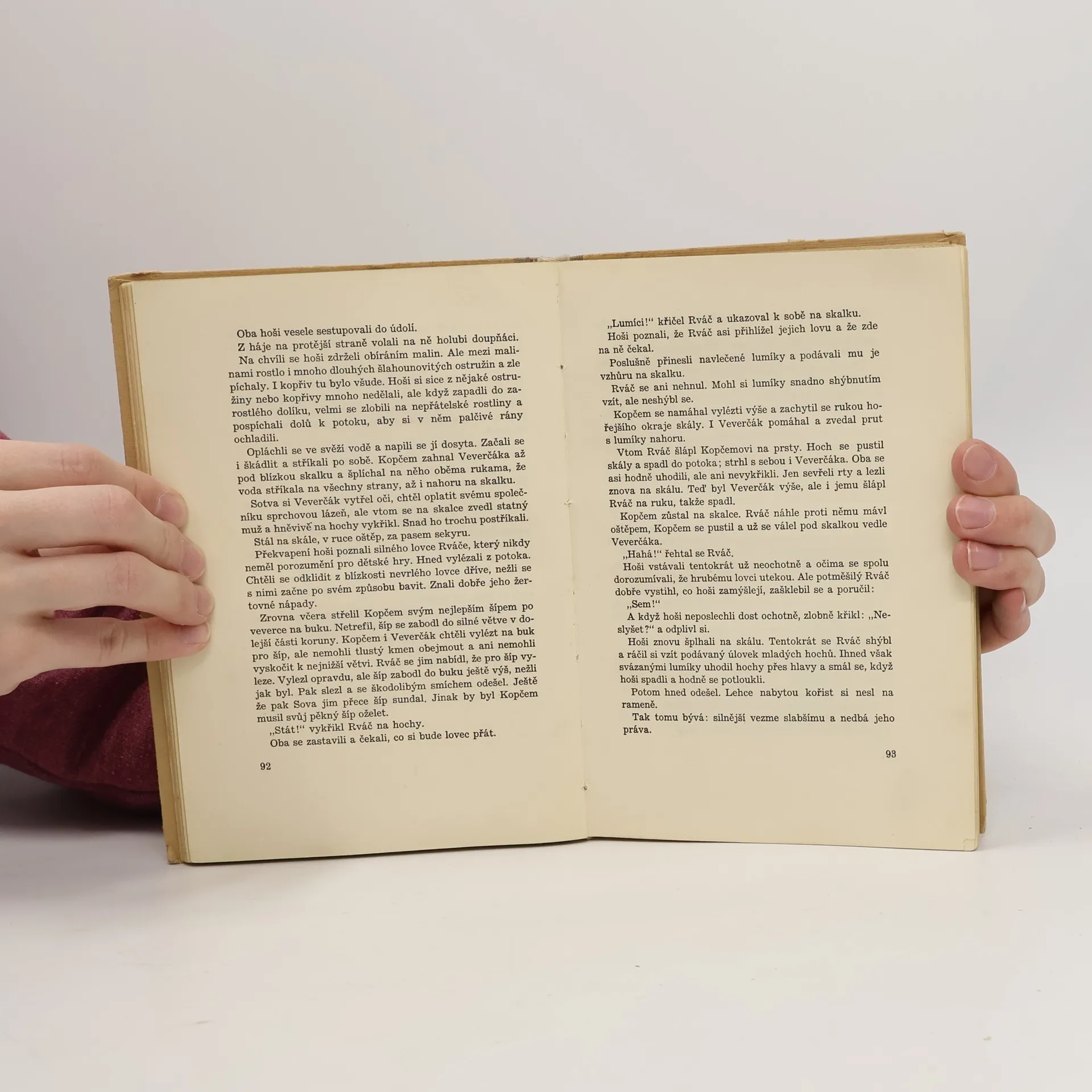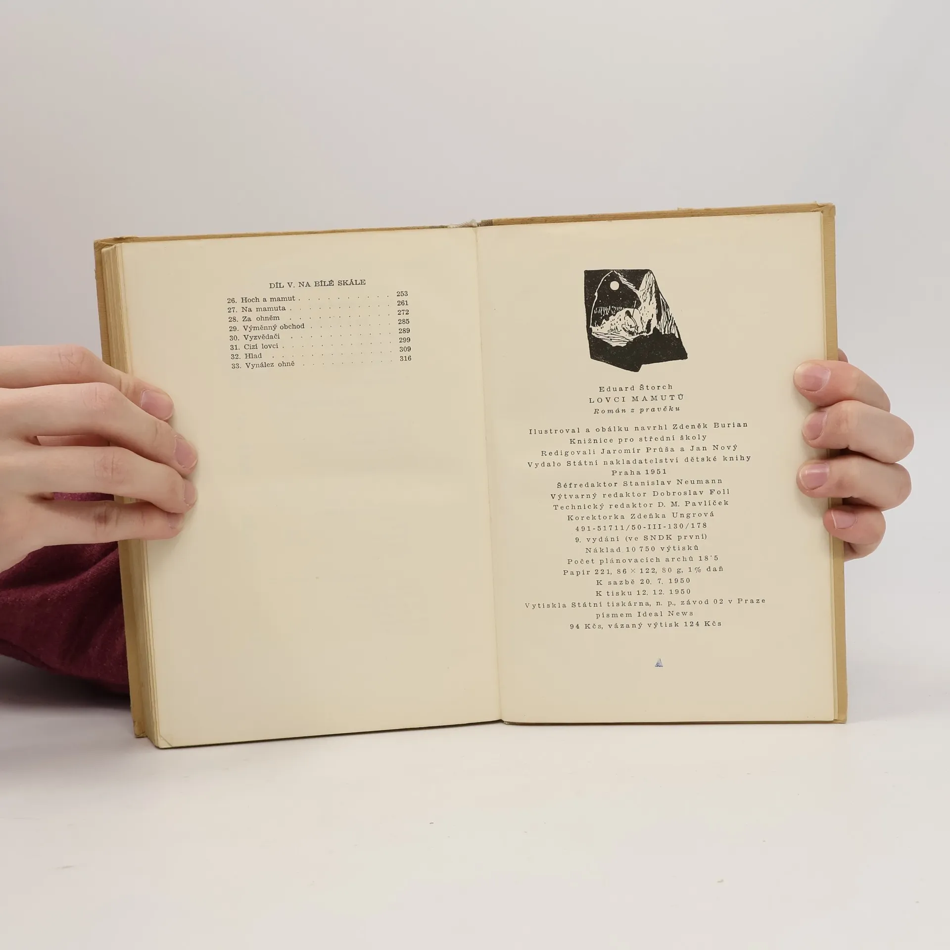 Na podkladě světově významných archeologických nálezů v českých zemích, zejména na Moravě, vyvolává autor formou románu pro mládež obraz naší přírody a života prvotně pospolné společnosti v době kamenné před dvaceti až třiceti tisíci lety. Tenkrát, kdy naše lesy a močálovité nížiny byly oživeny ještě mamuty, nosorožci, lvy, tygrem šavlozubým a stády sobů, byla vypuzena z věstonického sídliště tlupa diluviálních lovců, vyzbrojených primitivními zbraněmi a nástroji z pazourků a dorozumívajících se více posunky než souvislou řečí, za neustálých bojů s hladem zimou, krutou přírodou a nepřáteli nachází tlupa na čas útulek v studených jeskyních Moravského krasu, odkud po zastávce v Předmostí u Přerova na křižovatce cest pravěkých lidí, dospěje Polabím a Posázavím do konečného sídla na místech dnešní Libně. Její kulturní vzestup, patrný zvláště na hlavní postavě, bystrém hochu Kopčemovi, vrcholí jeho vynálezem rozněcování ohně dřívky.