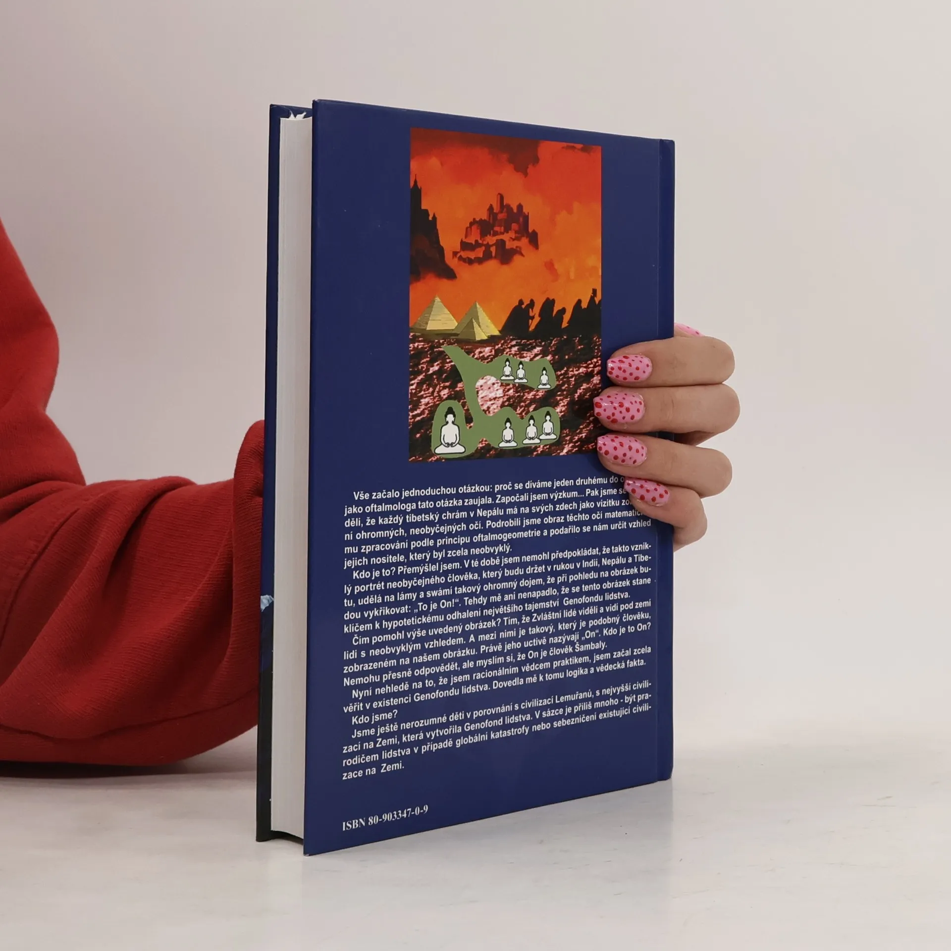 Obálkový podnázev: neuvěřitelné výsledky vědecké himálajské expedice. Vše začalo otázkou: proč se díváme jeden druhému do očí? Jako oftalmolog jsem se rozhodl prozkoumat tento fenomén. Zjistili jsme, že tibetské chrámy v Nepálu mají na zdech zobrazení ohromných očí. Analyzovali jsme tyto obrazy pomocí oftalmogeometrie a určili vzhled jejich nositele, který byl velmi neobvyklý. Při pohledu na portrét, který jsem měl v Indii, Nepálu a Tibetu, byli lámy a swámí ohromeni a vykřikovali: „To je On!". Tento obrázek se stal klíčem k hypotetickému odhalení tajemství Genofondu lidstva. Zvláštní lidé viděli pod zemí bytosti s neobvyklým vzhledem, mezi nimiž je ten, který se podobá našemu obrazu a je uctíván jako „On". Kdo je On? Mám podezření, že je to člověk Šambaly. Ačkoliv jsem racionálním vědcem, začal jsem věřit v existenci Genofondu lidstva. Tato víra je založena na logice a vědeckých faktech. Kdo jsme? Jsme nerozumné děti v porovnání s civilizací Lemuřanů, která vytvořila Genofond lidstva. V sázce je příliš mnoho – možnost stát se prarodičem lidstva v případě globální katastrofy nebo sebezničení naší civilizace.