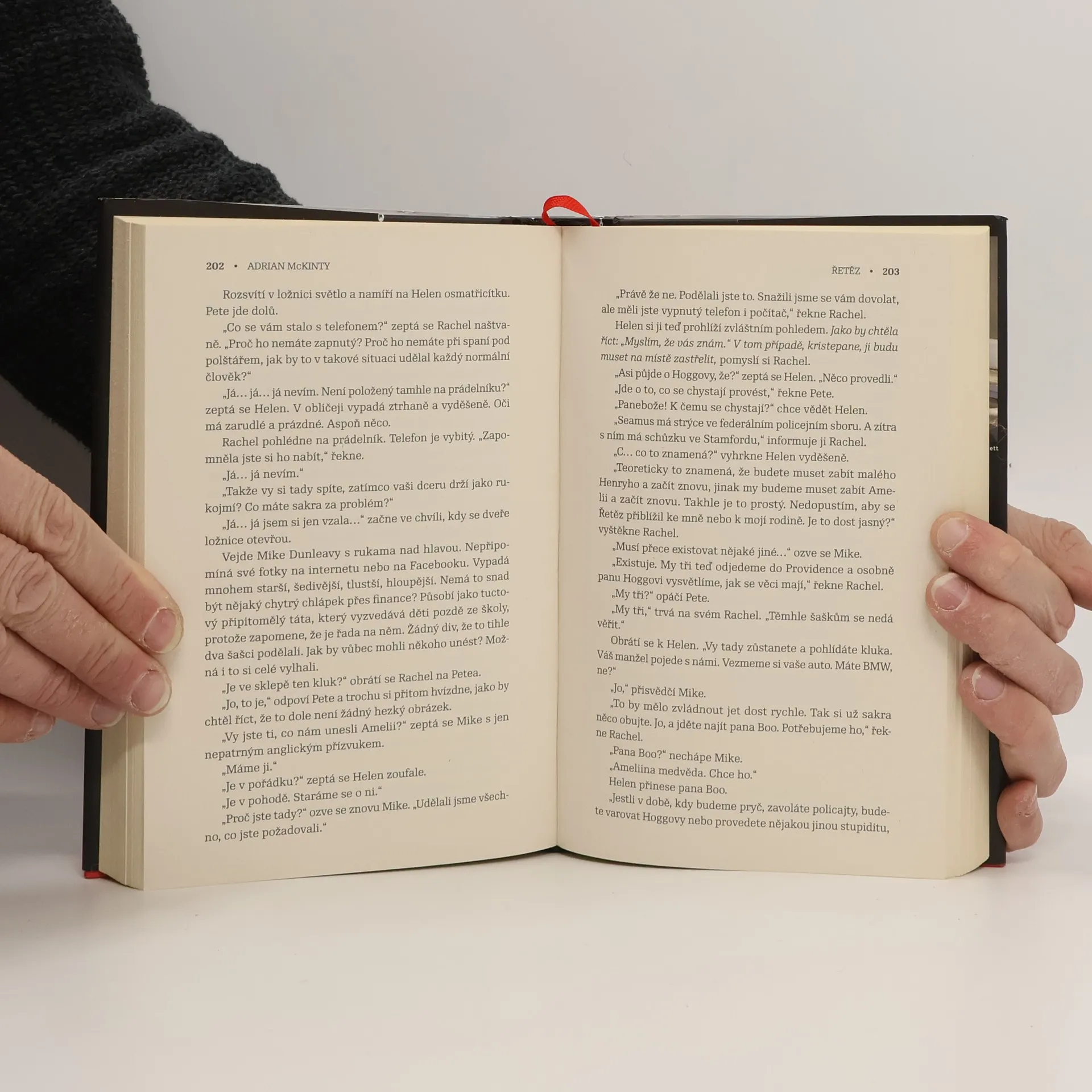 Musíte unést dítě, aby vaše dítě zůstalo naživu. Absurdní? Ano, jen dokud se to nestane právě vám. Na tomto půdorysu rozehrává jeden z nejvýraznějších současných autorů thrillerů a detektivek Adrian McKinty (doposud u nás vyšly tři jeho detektivní romány z řady s detektivem Seanem Duffym, zasazené do doby Nepokojů v Severním Irsku) příběh, jaký se snadno může stát noční můrou každého rodiče. Jsme v poklidném novoanglickém městečku, jemuž vládne tajuplný Řetěz. Nikdo o něm nemluví, nikdo se neodváží obrátit na policii ani na FBI. Vždyť jde o vaše dítě. Próza Adriana McKintyho má jako vždy spád a snadno vás nepustí ze svých spárů, připravte se, že vynecháte večeři a přejedete stanici, kde jste chtěli vystoupit. Zároveň se jeho text pozvedá z prvoplánového napětí k nevyřčeným otázkám po smyslu lidské existence, k hranicím morálky, k znepokojivému vědomí, že každé vítězství má svou cenu. Román, který ve vás bude dlouho doznívat.