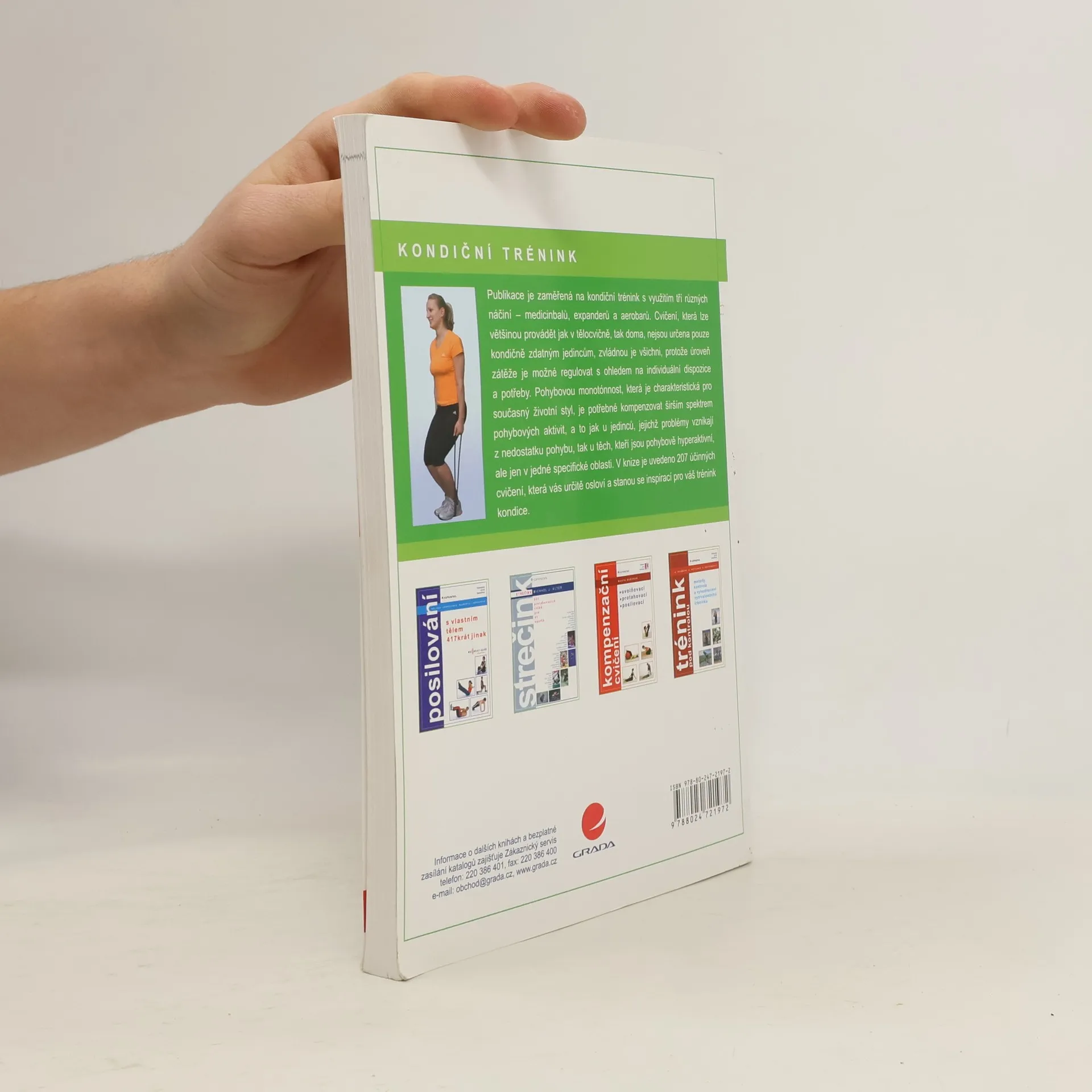 Podtitul: 207 cvičení s medicinbaly,expandery a aerobary Publikace je zaměřená na kondiční trénink s využitím tří různých náčiní - medicinbalů, expanderů a aerobarů. Cvičení, která lze většinou provádět jak v tělocvičně, tak doma, nejsou určena pouze kondičně zdatným jedincům, zvládnou je všichni, protože úroveň zátěže je možné regulovat s ohledem na individuální dispozice a potřeby. Pohybovou monotónnost, která je charakteristická pro současný životní styl, je potřebné kompenzovat širším spektrem pohybových aktivit, a to jak u jedinců, jejichž problémy vznikají z nedostatku pohybu, tak u těch, kteří jsou pohybově hyperaktivní, ale jen v jedné specifické oblasti. V knize je uvedeno 207 účinných cvičení, která vás určitě osloví a stanou se inspirací pro váš trénink kondice.