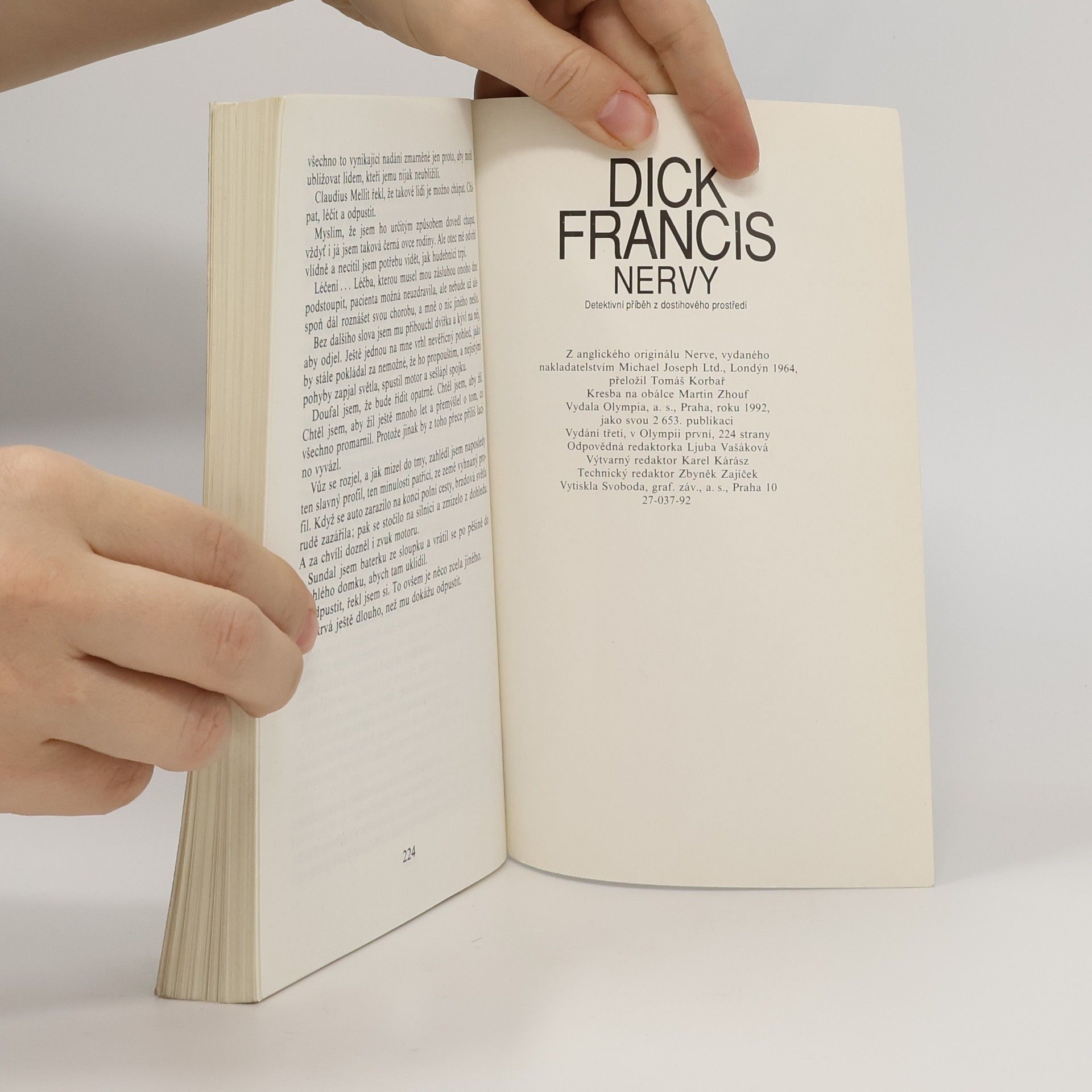 Podtitul: Detektivní příběh z dostihového prostředí Detektivka z atraktivního prostředí anglického dostihového sportu. Řada nečekaných vítězství i porážek favoritů přivede hrdinu na stopu rafinované dopingové aféry, jejíhož původce se rozhodne usvědčit. Nelítostný protivník mu připraví řadu horkých chvil a hrdina mnohokrát riskuje život, než se mu podvodníka podaří chytit do vlastní léčky. Kromě kultivovaného oddechového čtení poskytuje kniha i řadu informací o anglickém dostihovém sportu.... celý text