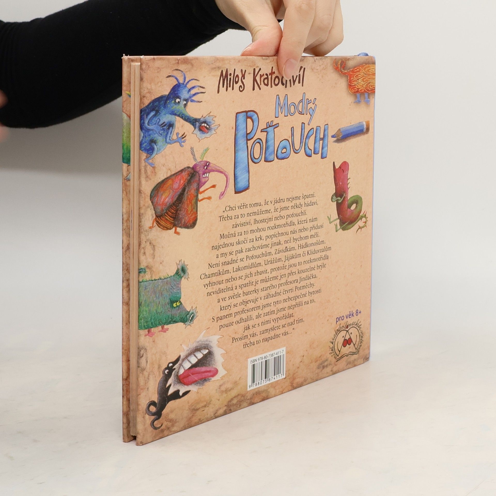 Poťouch bývá různě velký a různě barevný. Každý Poťouch má trumpetkové našeptávadlo, dva z pěti prstů na ruce výrazně delší, těm se říká popichovadla, a zbylé tři prsty jako přísavky. Štětiny na šišaté hlavě se odborně nazývají svědidla. Co se svědidel týká, může být Poťouch blonďák, rezatec i černoštětináč. Nijak zvlášť na tom nezáleží, protože všichni Poťouchové jsou neviditelní! Tohle je jediná knížka, kde je můžete vidět.