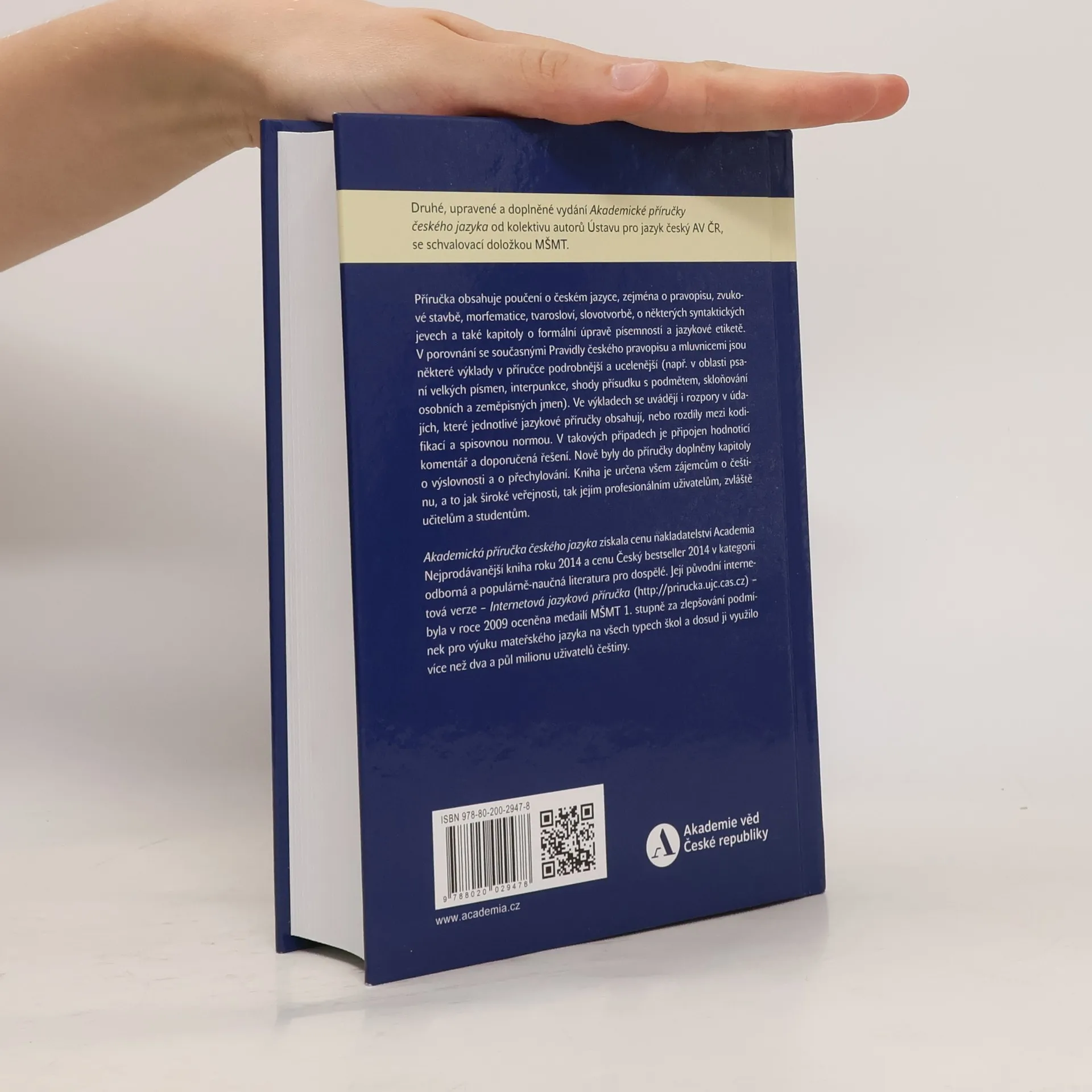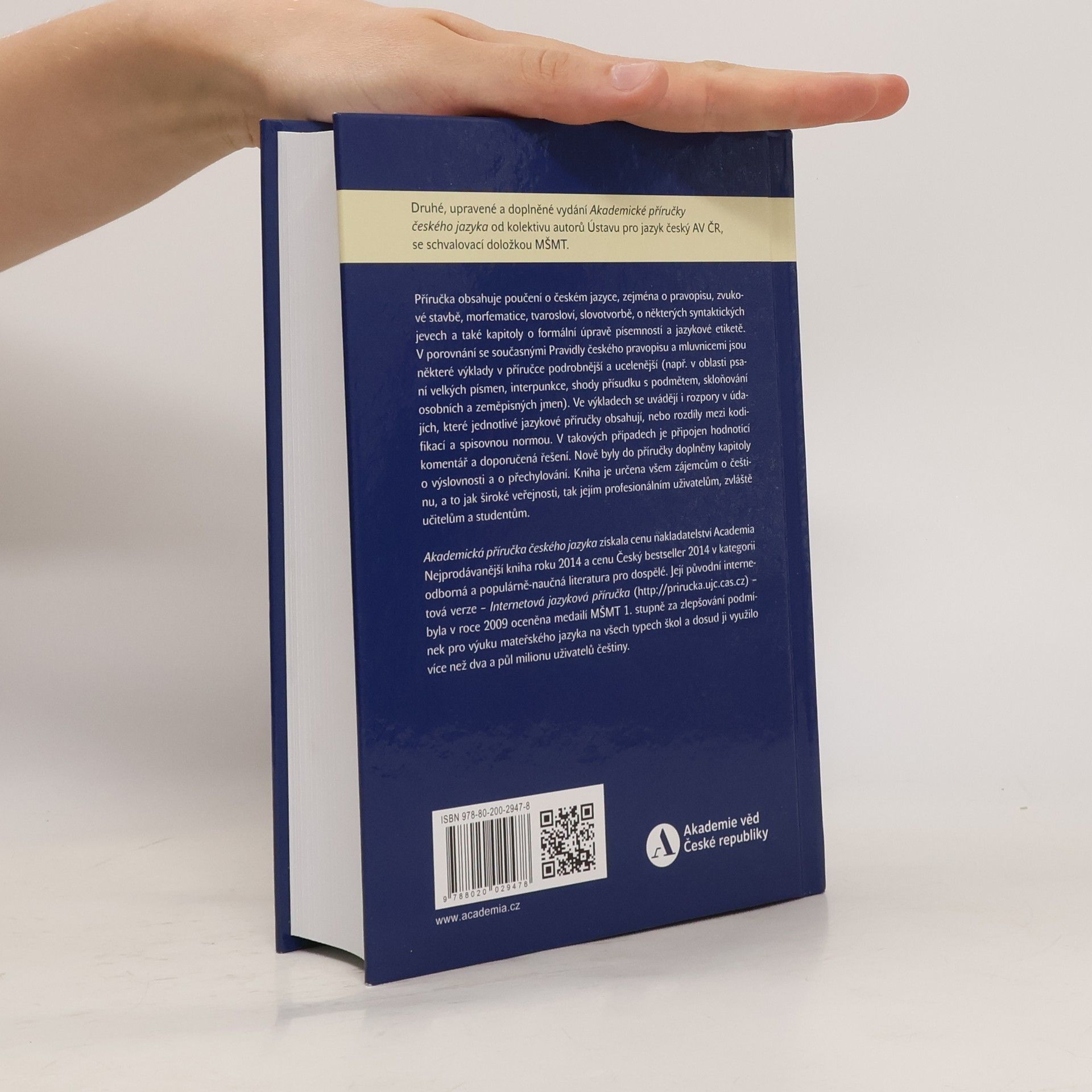 Druhé, upravené a doplněné vydání Akademické příručky českého jazyka od kolektivu autorů Ústavu pro jazyk český AV ČR, se schvalovací doložkou MŠMT, nabízí komplexní přehled o českém jazyce. Obsahuje poučení o pravopisu, zvukové stavbě, morfematice, tvarosloví, slovotvorbě a syntaktických jevech. Zahrnuje také kapitoly o formální úpravě písemností a jazykové etiketě. V porovnání se současnými Pravidly českého pravopisu a mluvnicemi je zde řada podrobnějších a ucelenějších výkladů, například v oblastech psaní velkých písmen, interpunkce, shody přísudku s podmětem a skloňování jmen. Příručka se také zabývá rozpory mezi různými jazykovými příručkami a obsahuje hodnotící komentáře a doporučená řešení. Nově jsou přidány kapitoly o výslovnosti a přechylování. Kniha je určena široké veřejnosti i profesionálním uživatelům, zejména učitelům a studentům. Akademická příručka českého jazyka získala cenu Nejprodávanější kniha roku 2014 a Český bestseller 2014 v kategorii odborné literatury. Její internetová verze byla oceněna medailí MŠMT za zlepšování podmínek pro výuku mateřského jazyka a využilo ji více než dva a půl milionu uživatelů.