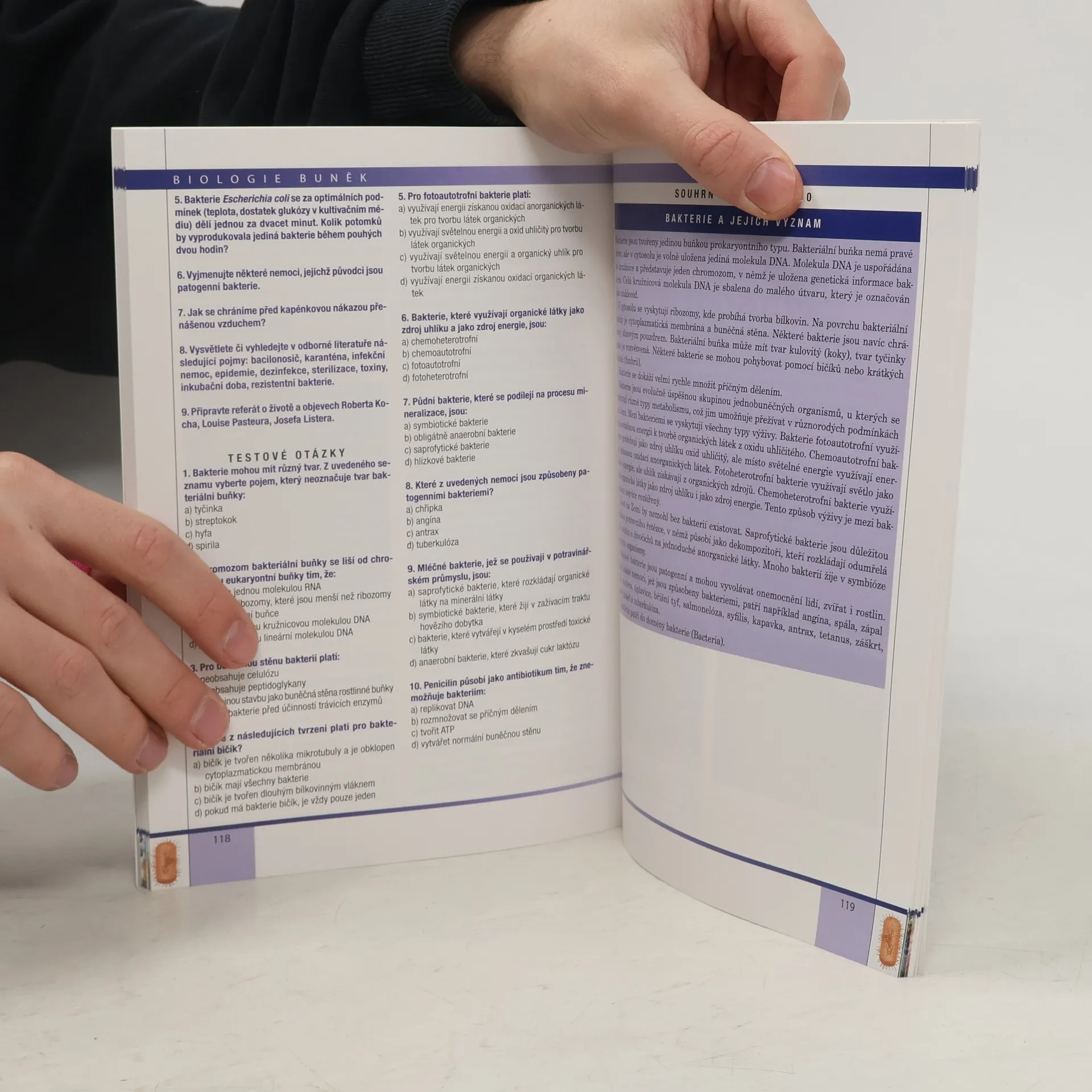 Učebnice buněčné biologie je určena širokému okruhu středoškolských studentů. Zahrnuje 14 kapitol s problematikou biologie buněk, bakterií, sinic, archeí a virů. Titul je doporučeným studijním podkladem pro přípravu ke SCIO testům! První kapitola pojednává o uspořádání života na Zemi, kapitoly 2–5 se zabývají chemickým složením a stavbou buněk. Následující kapitoly jsou věnovány procesům, jako je příjem a výdej látek buňkou (kapitola 6), rozmnožování buněk (kapitola 7), buněčné dýchání (kapitola 8) a fotosyntéza rostlinných buněk (kapitola 9). V 10. a 11. kapitole se seznámíte se světem bakterií a sinic, kapitola 12 krátce pojednává o zástupcích domény archea, kapitola 13 je věnována virům a virovým infekcím. Poslední kapitola je zaměřena na porovnání prokaryontní a eukaryontní buňky a závěrečné zopakování znaků buněk živočichů, rostlin a hub, co mají společného a čím se liší. Struktura textu je obdobná jako v Genetice. Významnou součástí učebnice Biologie buněk je velké množství obrázků (kreseb, schémat, fotografií), jež napomáhají k lepšímu porozumění učiva na základě vytváření konkrétních a správných představ o probíraných jevech a buněčných procesech.