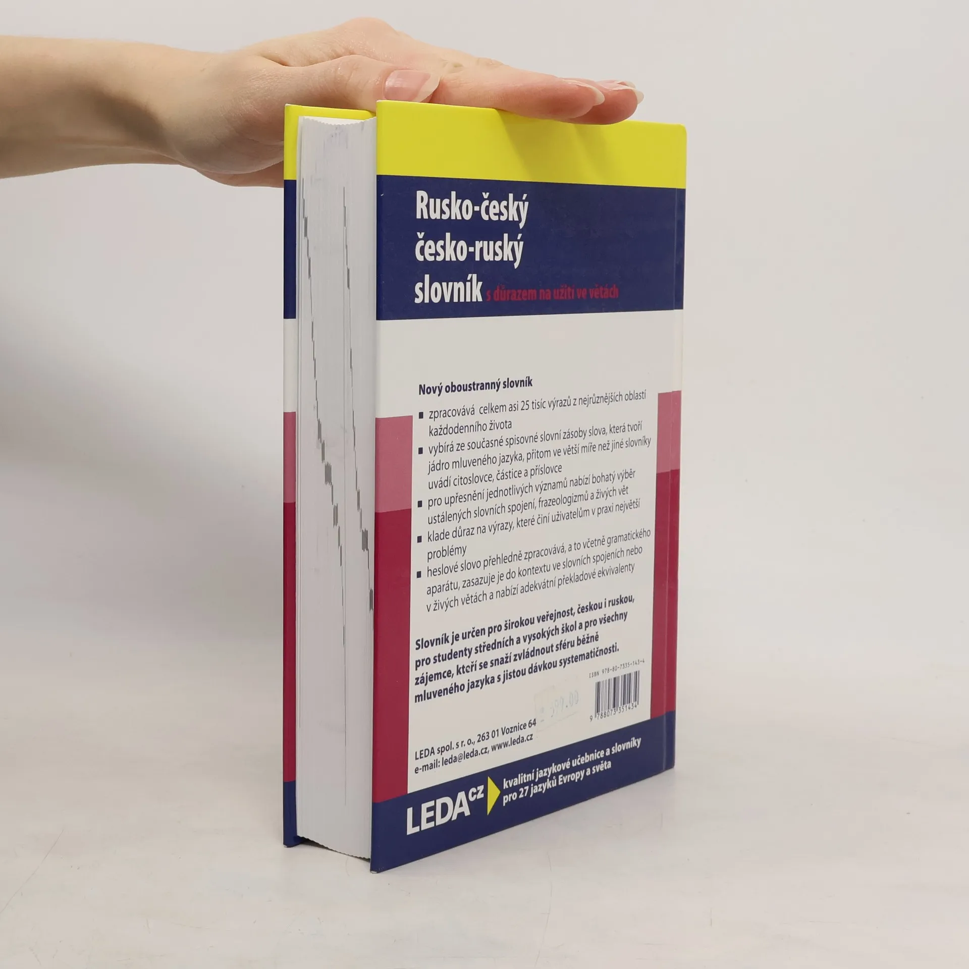Nový oboustranný slovník - zpracovává celkem asi 25 tis. výrazů z nejrůznějších oblastí každodenního života - vybírá ze současné spisovné slovní zásoby slova, která tvoří jádro mluveného jazyka, přitom ve větší míře než jiné slovníky uvádí citoslovce, částice a příslovce - pro upřesnění jednotlivých významů nabízí bohatý výběr ustálených slovních spojení, frazeologizmů a živých vět - klade důraz na výrazy, které činí uživatelům v praxi největší problémy - heslové slovo přehledně zpracovává, a to včetně gramatického aparátu, zasazuje je do kontextu ve slovních spojeních nebo v živých větách a nabízí adekvátní překladové ekvivalenty Slovník je určen pro širokou veřejnost, českou i ruskou, pro studenty středních a vysokých škol a pro všechny zájemce, kteří se snaží zvládnout sféru běžně mluveného jazyka s jistou dávkou systematičnosti.
