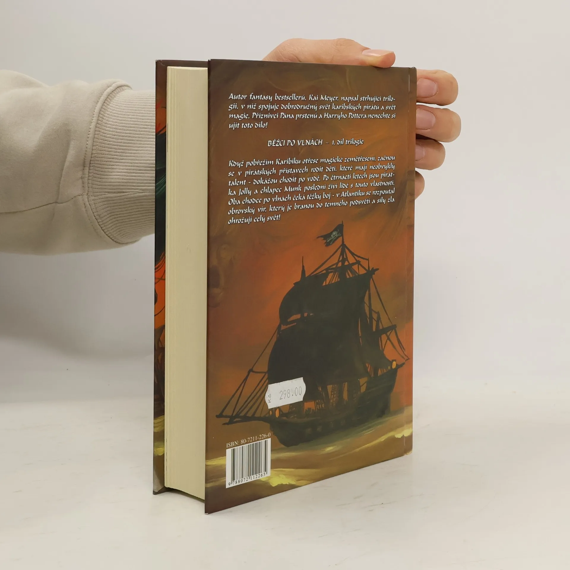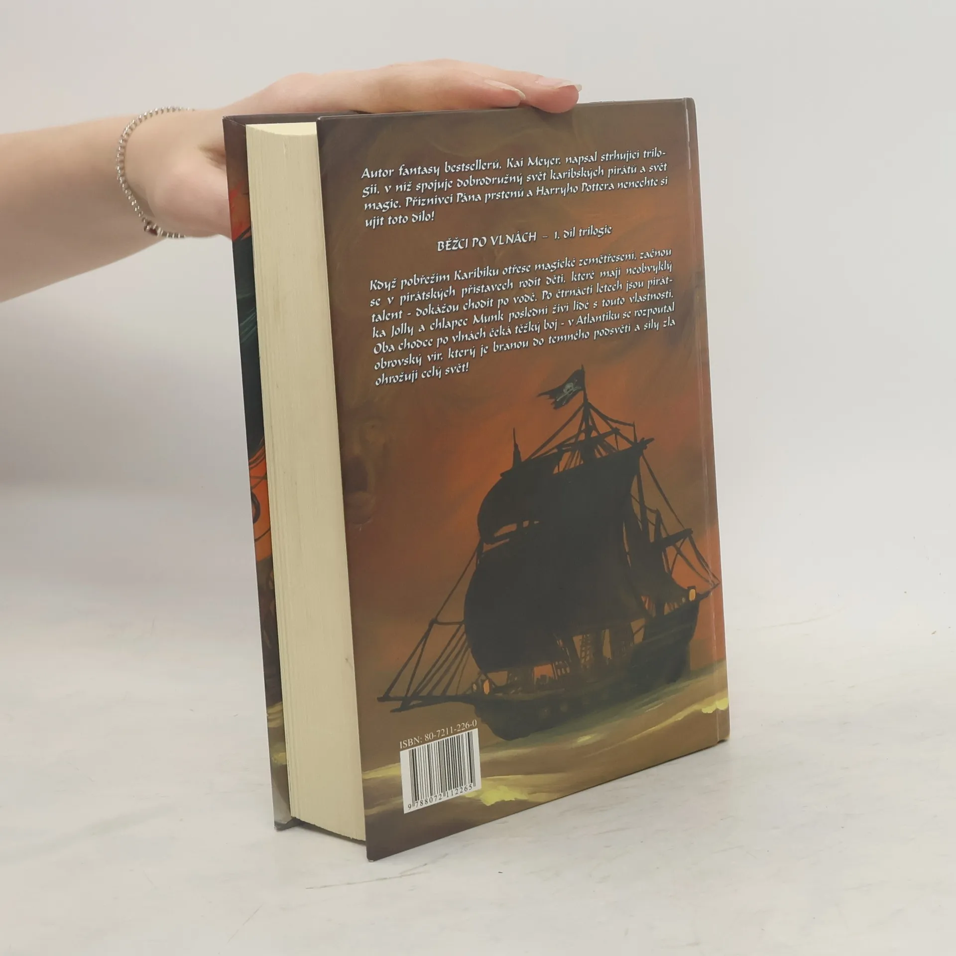Autor bestsellerů, Kai Meyer, napsal strhující fantastickou trilogii, v níž spojuje dobrodružný svět karibských pirátů a svět magie. Běžci po vlnách - první díl Když pobřežím Karibiku otřese magické zemětřesení, začnou se v pirátských přístavech rodit děti, které mají neobvyklý talent - dokážou chodit po vodě. Po čtrnácti letech se Jolly domnívá, že se svou schopností zůstala sama. Pak však potkává Munka, chlapce, který oplývá stejnými vlastnostmi. Oba chodce po vlnách však čeká těžký osud - v Atlantiku se rozpoutal obrovský vír Maelstrom, který mohou znovu utišit pouze oni dva.