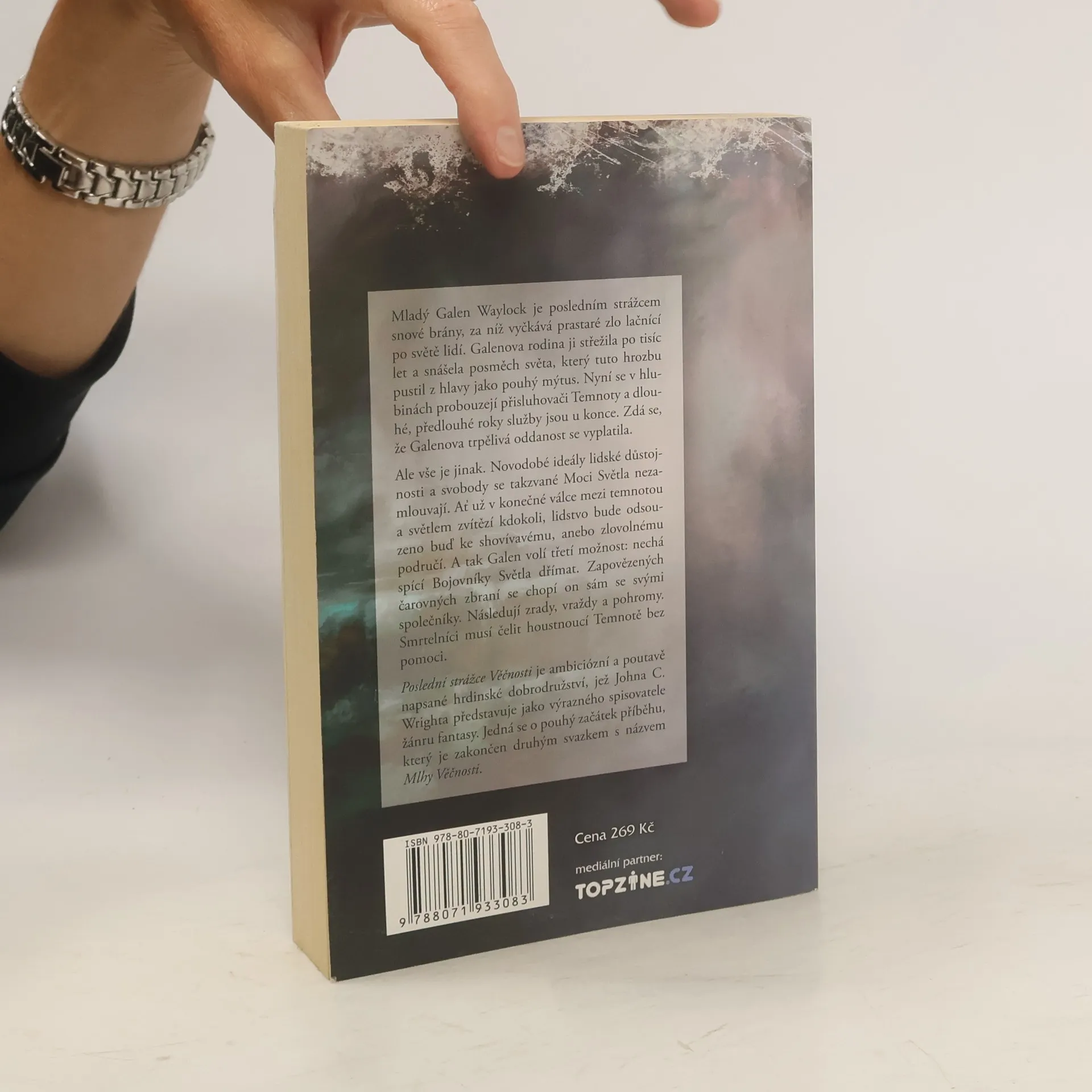 Mladý Galen Waylock je posledním strážcem snové brány, za níž vyčkává prastaré zlo lačnící po světě lidí. Galenova rodina ji střežila po tisíc let a snášela posměch světa, který tuto hrozbu pustil z hlavy coby pouhý mýtus. Nyní se v hlubinách probouzejí přisluhovači Temnoty a dlouhé, předlouhé roky služby jsou u konce. Zdá se, že Galenova trpělivá oddanost se vyplatila. Ale vše je jinak. Novodobé ideály lidské důstojnosti a svobody se takzvané Moci Světla nezamlouvají. Ať už v konečné válce mezi temnotou a světlem zvítězí kdokoli, lidstvo bude odsouzeno buď ke shovívavému, anebo zlovolnému područí. A tak Galen volí třetí možnost: nechá spící Bojovníky Světla dřímat. Zapovězených čarovných zbraní se chopí on sám se svými společníky. Následují zrady, vraždy a pohromy. Smrtelníci musí čelit houstnoucí Temnotě bez pomoci. Poslední strážce Věčnosti je ambiciózní a překrásně napsané hrdinské dobrodružství, jež Johna C. Wrighta představuje jako výrazného spisovatele žánru fantasy. Jedná se o pouhý začátek příběhu, který je zakončen druhým svazkem s názvem Mlhy Věčnosti.