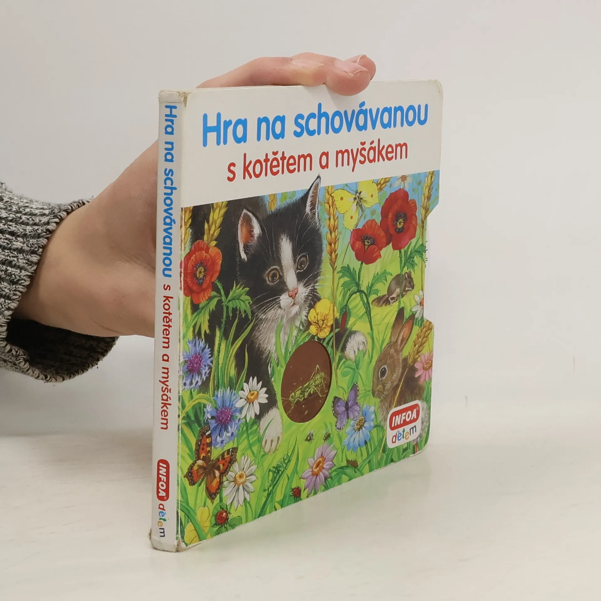 Interaktivní leporelo s otočným kolečkem a příběhem o kotěti, které se pokouší chytit myšáka. Děti pomocí otočného kolečka hledají, kam se myšák schovává, a přitom nacházejí další zvířátka.