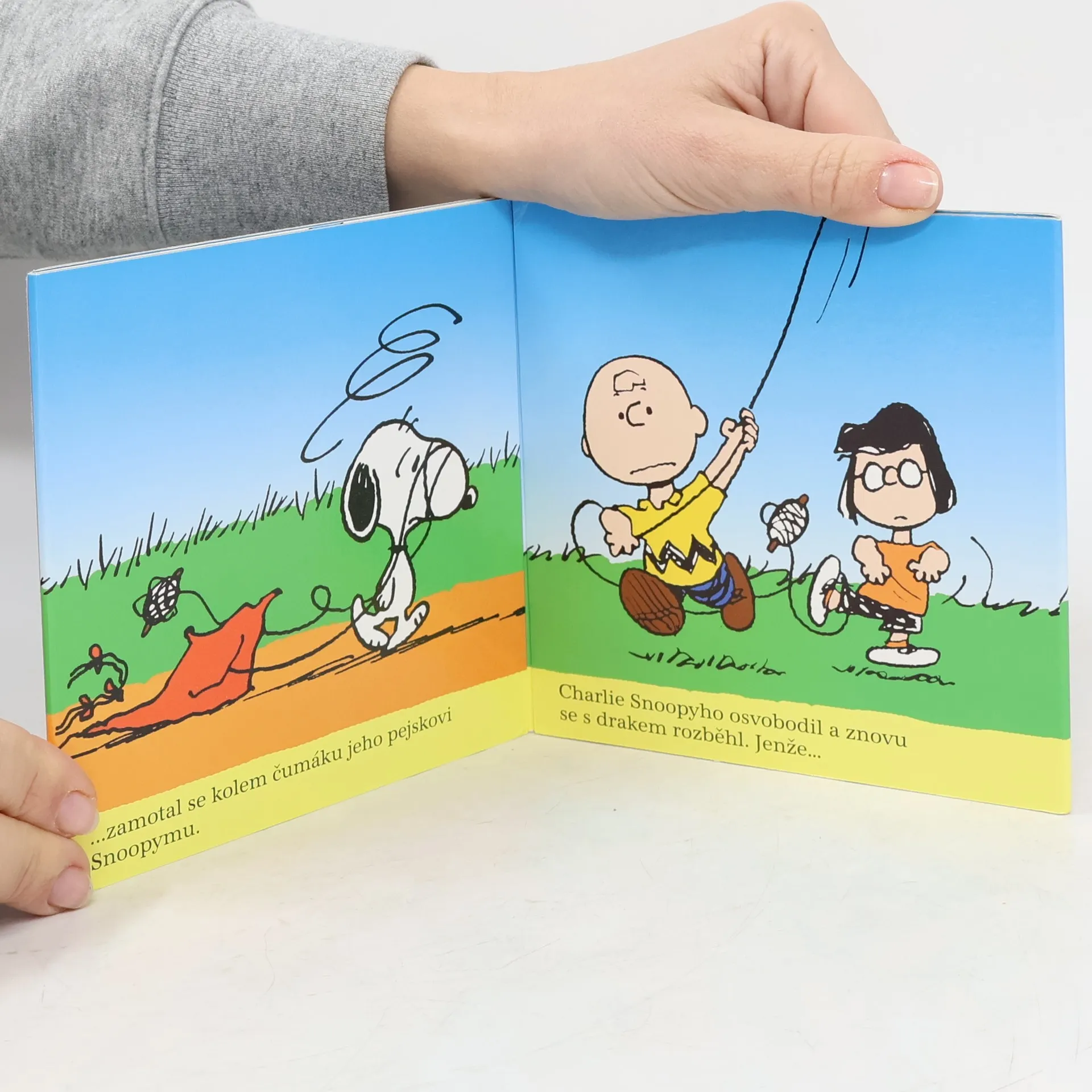 Snoopy je docela neobyčejné štěně, co umí neuvěřitelné kousky a pobaví celou rodinu i malého Charlieho. Jednou Charlie se Snoopym pouští draka a podaří se mu provázkem omotat všechny přihlížející, sebe nevyjímaje. Půvabné leporelo s humorným příběhem s nejoblíbenější postavičkou kreslených filmů.