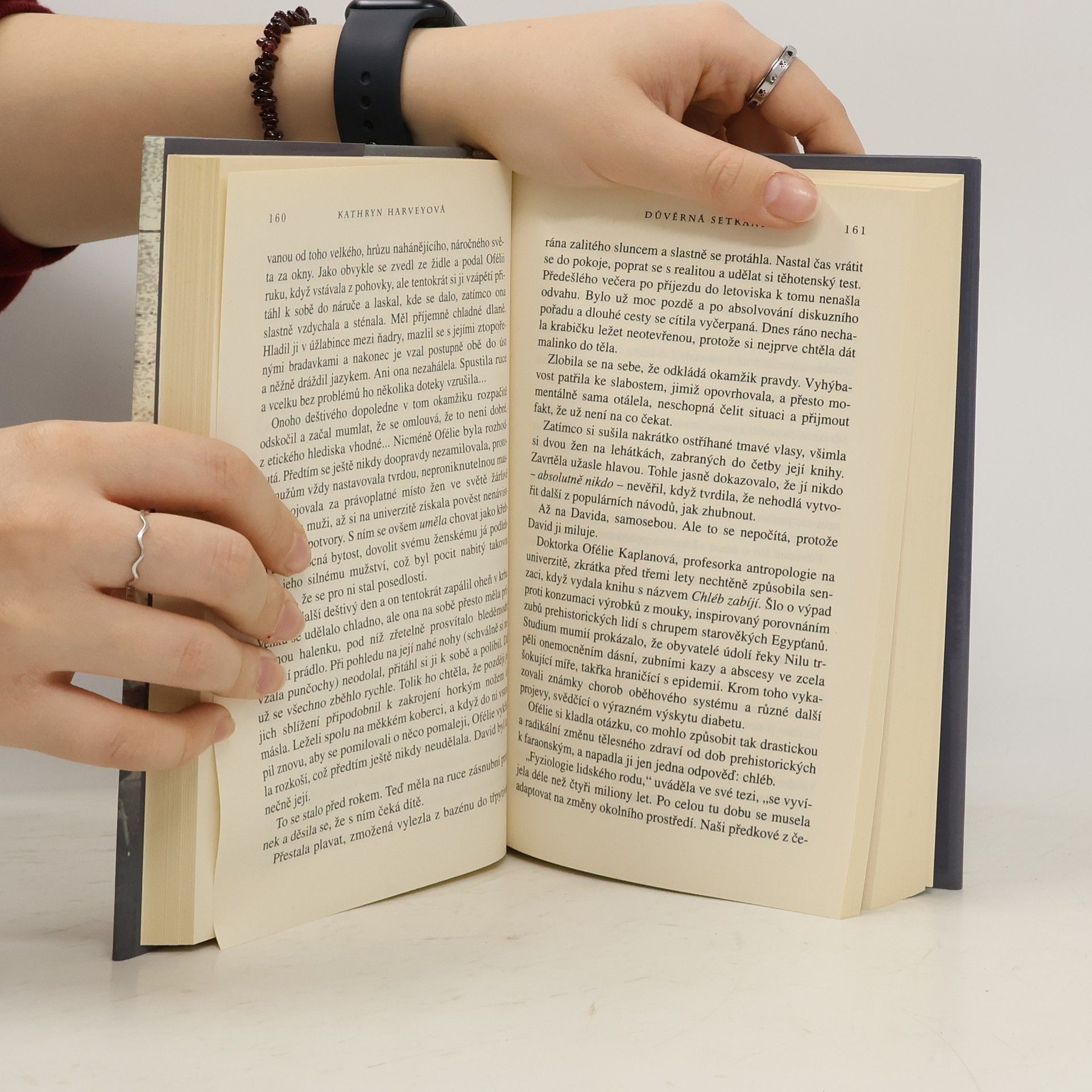 Autorka Barbara Woodová, známá díky románům jako Nespoutané sny a Kruté hvězdy, napsala pod pseudonymem K. Harveyová více než dvacet titulů, které se staly bestsellery a získaly mezinárodní ocenění. Její nejnovější román, Důvěrná setkání, se odehrává v luxusním rekreačním středisku Oáza v kalifornské poušti, kam se lze dostat pouze letadlem. Toto místo, kde je rozkoš prioritou, je domovem tří žen - Coco, Sissy a Ophelia - které se sem dostaly díky neznámé soutěži, o jejíž účasti nemají tušení. Spojuje je tajemný plán hlavní hrdinky, Abby Tylerové, majitelky Oázy, která se snaží najít své dítě, jež jí bylo ukradeno při porodu. Aby se s ním znovu shledala a uzavřela dlouholetou bolest, musí čelit své minulosti. Situace se zkomplikuje s příchodem písečné bouře a najatého vraha, který má své vlastní úmysly. Příběh kombinuje napínavou detektivní zápletku s romantickými a erotickými prvky, které provázejí vývoj vztahů postav. Kathryn Harveyová opět dokazuje svůj talent a schopnost zaujmout čtenáře.
