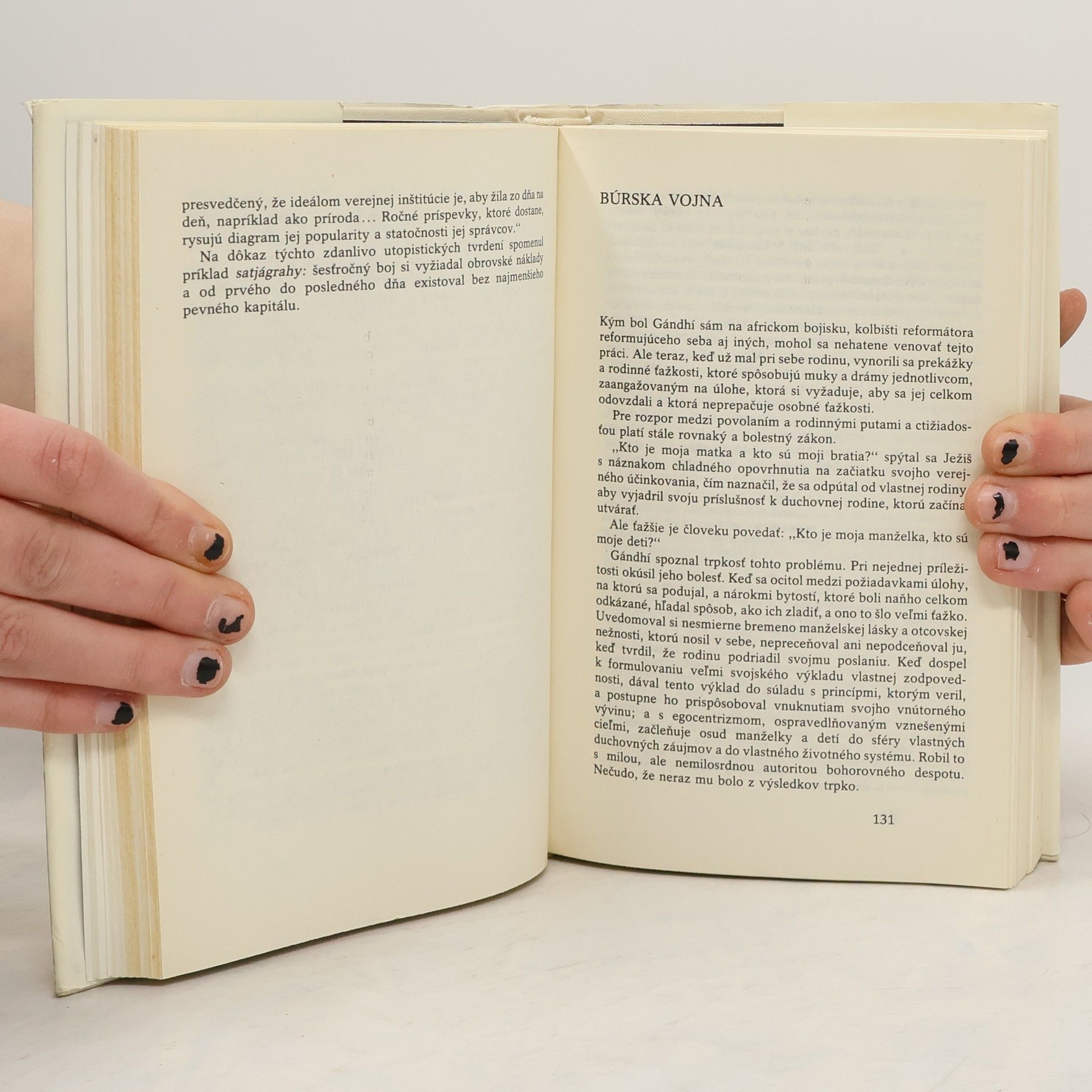 Životopis indického politika je napsán s obdivem a úctou k této pozoruhodné osobnosti 20. stol. Obsah: Životopisná kniha o Mohandásovi Gándhím. Kapitoly: Mladosť /1869-1893/-Pozadie, Roky v Rádžkóte, Vegetarián v Londýne. Južná Afrika /1893-1914/-Noc v Maritzburgu, Politický začiatok, Búrska vojna, Johannesburg a Phoenix, Skúsenosť so satjágrahou, Víťazstvo a návrat. India /1915-1948/-Sily na bojisku, Tri bitky za robotníkov, Krvipreliatie a Amritsare, Rok 1921, Nejednota, Soľný pochod, Dillíjsky pakt a londýnska konferencia, Pre "dietky božie", "Quit India!", Krvavý predvečer, "He, Ráma!" Cena knihy v čase vydania: 45.- Kčs.