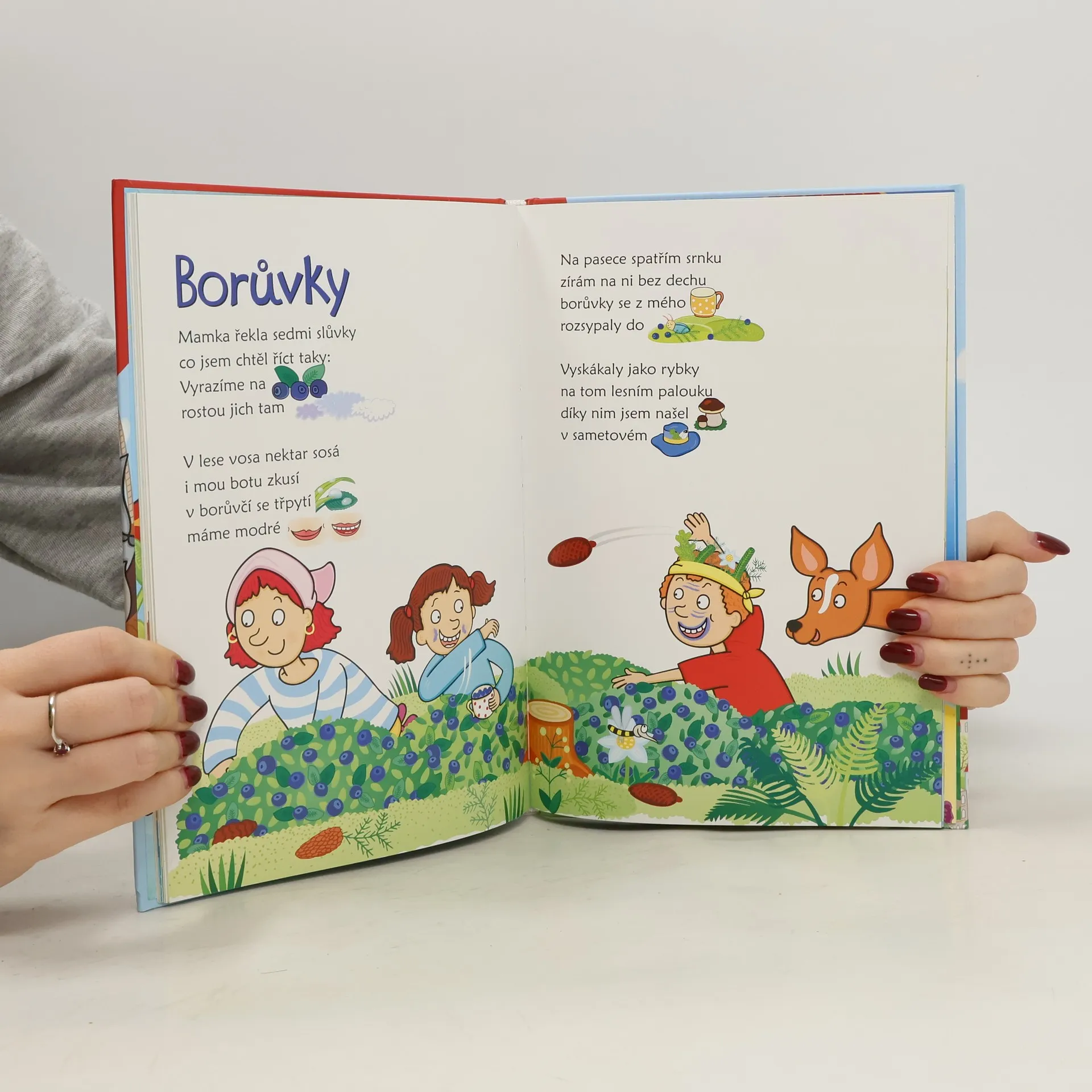 Pro chytré hlavičky od 3 do 8 let. Pro chytré hlavičky (od 3 do 8 let) a jejich babičky, dědy, táty, mámy (kteří už čtou sami) Veselá knížka probouzí v dětech jazykový cit a chuť číst. Rozvíjí slovní zásobu a přináší potěšení ze společného čtení. V básničkách děti rády uhodnou slovo, které se rýmuje. Milují také obrázkové texty, kde i předškolák sám něco přečte. V této knížce najdou obojí místo rýmů jsou totiž na konci veršů obrázky. V mozku se pak dějí věci! Zároveň je zapojeno centrum řeči, centrum vizuálního vnímání, vnímání rytmu i logické myšlení. Dochází k propojení hemisfér a účinnému rozvoji intelektu. Dítě ovšem nic takového netuší, má jen radost, že mu to tak pěkně jde. Půvabné ilustrace i text jsou plné humoru a poetiky, která pohladí duši dětí i dospělých. Těm velkým připomenou to, co malí ještě vědí: že obyčejné věci jsou vlastně velmi neobyčejné. Knížka je vhodná nejen domů, ale i do školky a do 1. třídy.