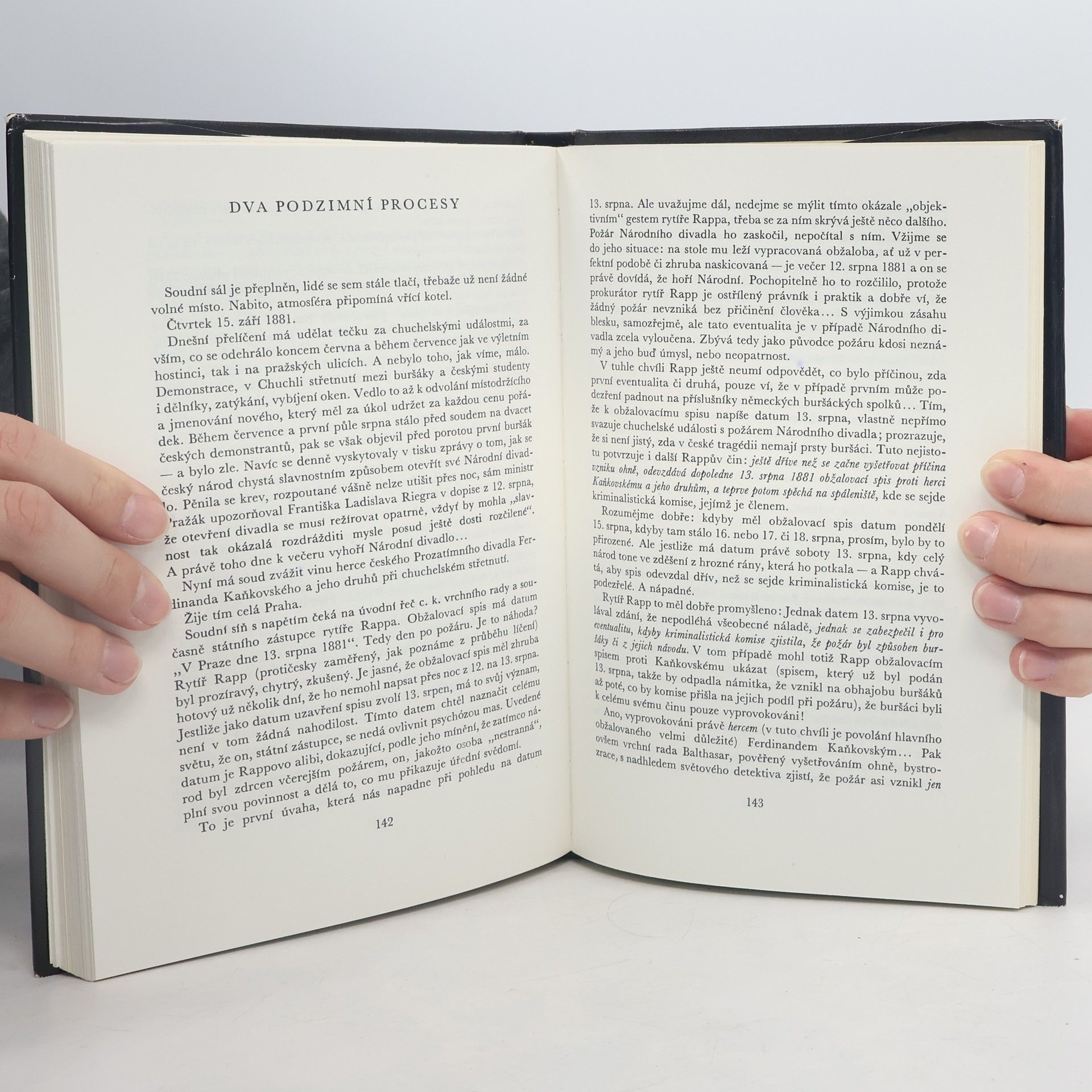 Sto let nikoho nenapadlo pátrat znova po příčinách vzniku požáru sotva dostavěného Národního divadla, revokovat tehdejší situaci, přezkoumat prapodivné vyšetřování, soudní procesy a závěry. Miroslav Ivanov se do toho pustil, překročil bariéru času. Získal sotva dostupné prameny, rekonstruoval události, oživil aktéry a jejich charaktery, našel atmosféru doby. Ze zorného úhlu dneška a s pomocí současné techniky prověřoval a hledal důkaz pravdy...