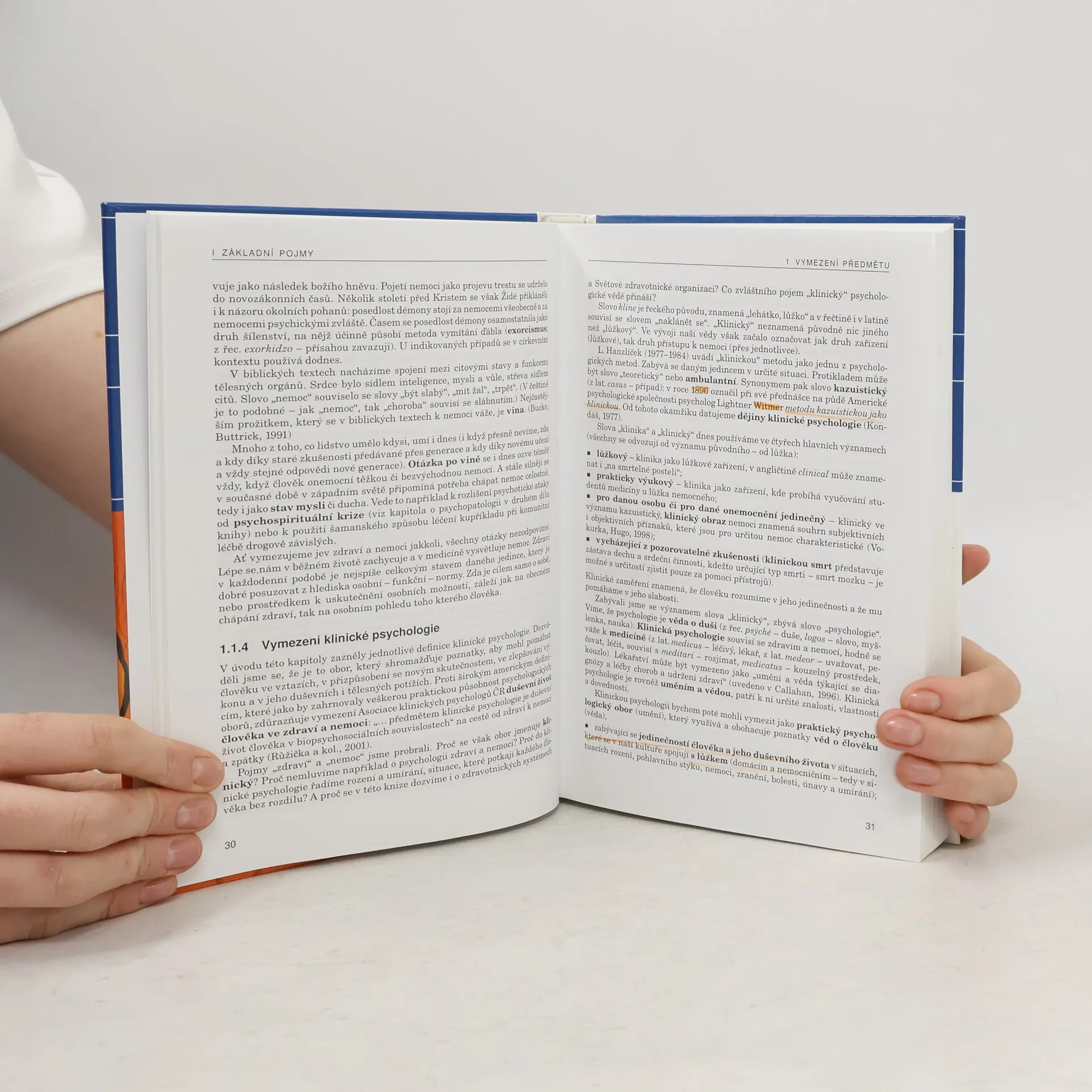 Klinická psychologie studuje nástroje porozumění psychice konkrétního jedince, zejména člověka nějakým způsobem trpícího, a rozvíjí možnosti psychologické pomoci a psychosociální podpory.Předkládaná práce představuje v české literatuře unikátní učebnici uvádějící do této problematiky. Popisuje teoretická východiska současné klinické psychologie i konkrétní podmínky výkonu profesev České republice. Pojetí učebnice překlenuje rozdíl mezi duševními a tělesnými starostmi člověka i mezi světem pomáhajících a těch, jimž se pomáhá