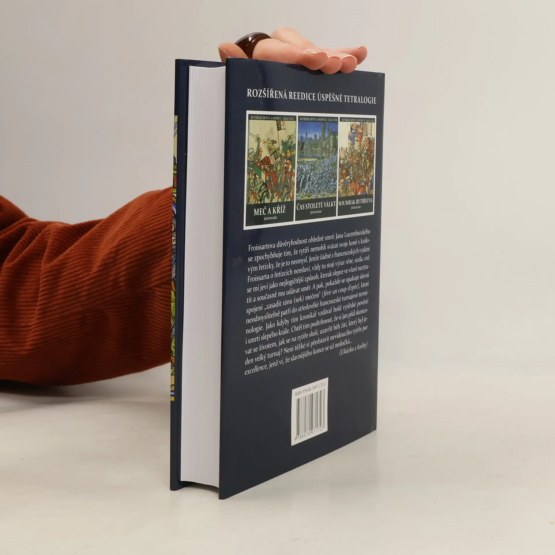 Rytířská krev, druhý svazek tetralogie Rytířské bitvy a osudy, pokračuje barvitým líčením válečnictví a rytířských zvyků konce raného a počátku vrcholného středověku. Skrze osudy hraběte z Montfortu a vikomta Trencavela projdeme nesmiřitelnou válkou s Albigenskými na jihu Francie, u Lehnice budeme svědky střetu křesťanských rytířů s Mongoly a ve dvou bitvách, u Coutrai a Bannockburnu, uvidíme, kterak rytířské vojsko začaly porážet houfy neurozené pěchoty. Dvě obsáhlé části jsou věnovány posledním bitvám dvou českých králů; budeme se v nich snažit dopátrat pravdy o smrti Přemysla II. Otakara u Dürnkrut a Jana Lucemburského u Kresčaku. Nové vydání je krom ilustrací rozšířeno o osudy Jeana de Joinvilla, účastníka 7. křížové výpravy, a o obranu Akkonu, poslední křižácké výspy ve Svaté zemi.