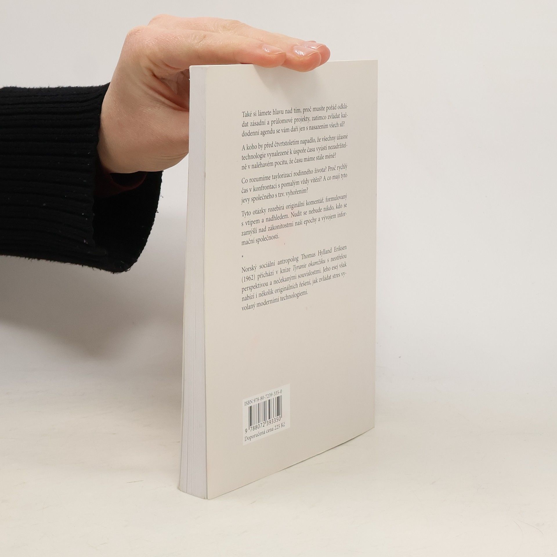 Také si lámete hlavu nad tím, proč musíte pořád odkládat zásadní a průlomové projekty, zatímco zvládat každodenní agendu se vám daří jen s nasazením všech sil? A koho by před čtvrtstoletím napadlo, že všechny úžasné technologie vynalezené k úspoře času povedou nezadržitelně k tomu, že budeme mít nevyvratitelný pocit, že času máme stále méně? Co rozumíme taylorizací rodinného života? Proč rychlý čas v konfrontaci s pomalým vždy vítězí? A co mají tyto jevy společného s tzv. vyhořením? Tyto otázky rozebírá Tyranie okamžiku - originální komentář odborníka v oboru sociální antropologie, formulovaný s vtipem a nadhledem. Nudit se nebude nikdo, kdo se zamýšlí nad zákonitostmi naší epochy a vývojem informační společnosti. Norský sociální antropolog Thopmas Hylland Eriksen (1962) přichází v knize Tyranie okamžiku s neotřelou perspektivou a nečekanými souvislostmi. Jeho esej však nabízí i několik originálních řešení, jak zvládat stres vyvolaný moderními technologiemi.