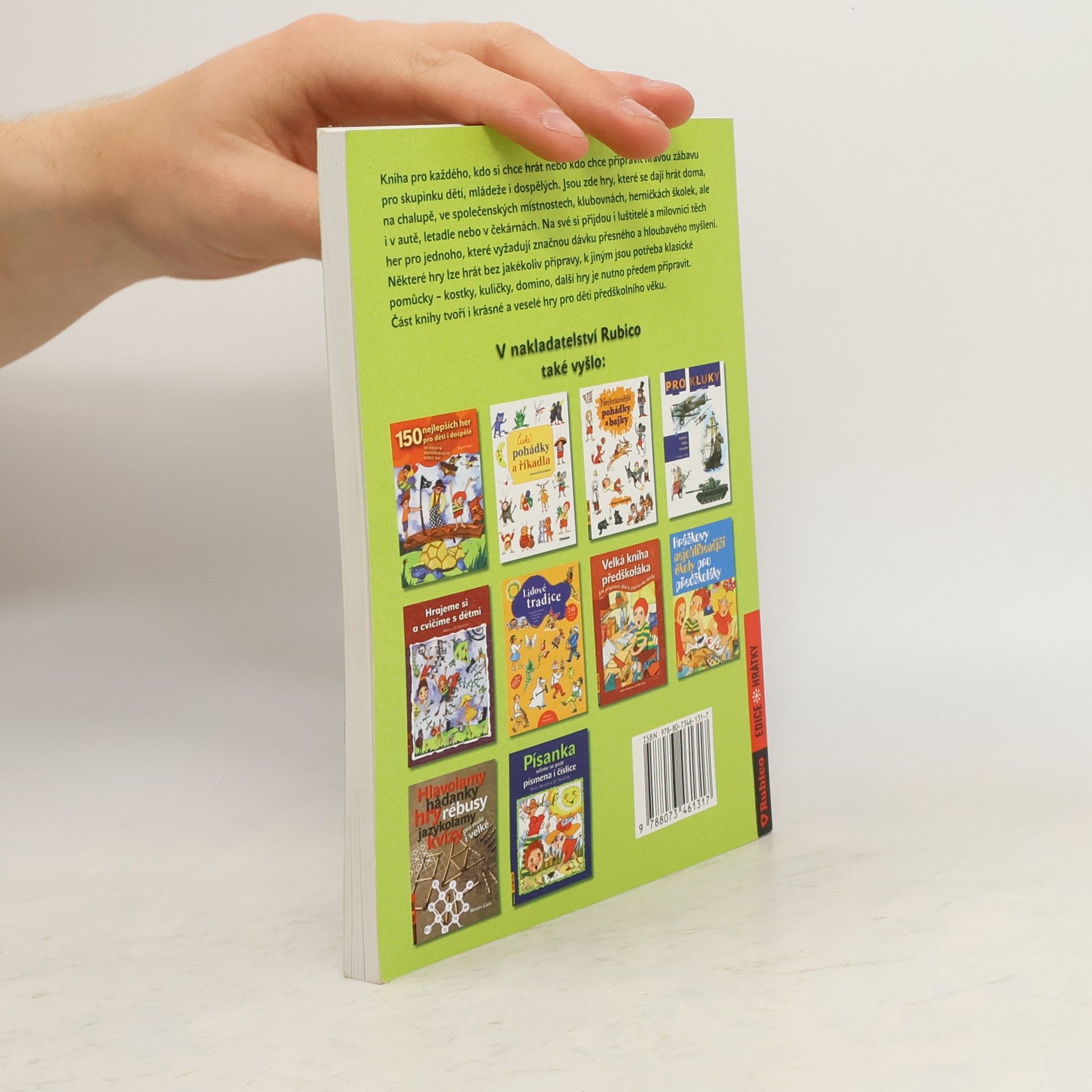 Kniha pro každého, kdo si chce hrát nebo kdo chce připravit hravou zábavu pro skupinku dětí, mládeže i dospělých. Jsou zde hry, které se dají hrát doma, na chalupě, ve společenských místnostech, klubovnách, herničkách školek, ale i v autě, letadle nebo v čekárnách. Na své si přijdou i luštitelé a milovníci těch her pro jednoho, které vyžadují značnou dávku přesného a hloubavého myšlení. Některé hry lze hrát bez jakékoliv přípravy, k jiným jsou potřeba klasické pomůcky - kostky, kuličky, domino, další hry je nutno předem připravit. Část knihy tvoří i krásné a veselé hry pro děti předškolního věku.