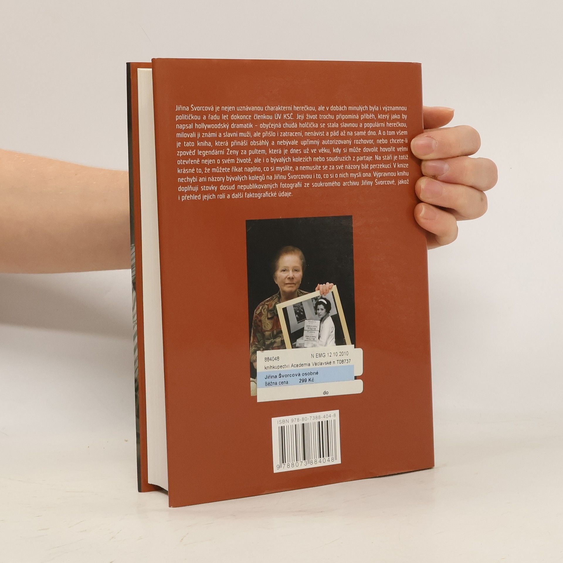 Herečka, recitátorka a bývalá komunistická funkcionářka Jiřina Švorcová se narodila 25. května 1928 v Kociánovicích u Hradce Králové. Absolvovala pražskou DAMU a v letech 1951-1989 byla členkou činohry Divadla na Vinohradech. V televizi začínala jako hlasatelka a během let v ní natočila stovky inscenací a her. Největší popularitu nejen u nás, ale i na hranicemi jí přinesla hlavní role Anny Holubové v seriálu Jaroslava Dietla Žena za pultem. V knize rozhovorů s ostříleným novinářem a publicistou Miroslavem Graclíkem Jiřina Švorcová hovoří nejen o své kariéře a osobním životě, ale vysvětluje a obhajuje i své politické názory.