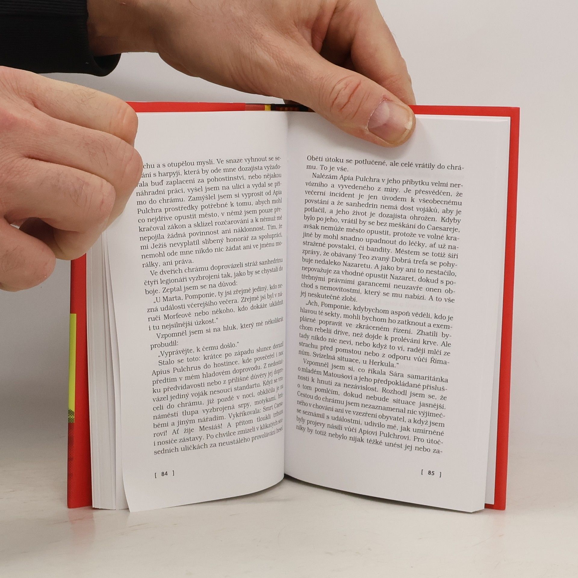 V prvním století našeho letopočtu cestuje Říman Pomponius Flatus po Blízkém východě, kde hledá zázračnou léčivou vodu. Neustálé ochutnávání pochybných vod mu přivodí střevní potíže a on se musí pár dní zdržet v Nazaretu. Tam ho osloví malý chlapec jménem Ježíš s prosbou, aby zachránil před popravou jeho otce tesaře, obviněného z vraždy bohatého římského občana. Pomponius Flatus se proti své vůli stane svérázným detektivem, jenž se snaží přijít na kloub záhadné vraždě, aby nebyl popraven nevinný tesař. Kniha je zároveň historickým románem, hagiografií, detektivkou i parodií všech těchto žánrů a patří k nejvtipnějším autorovým textům.