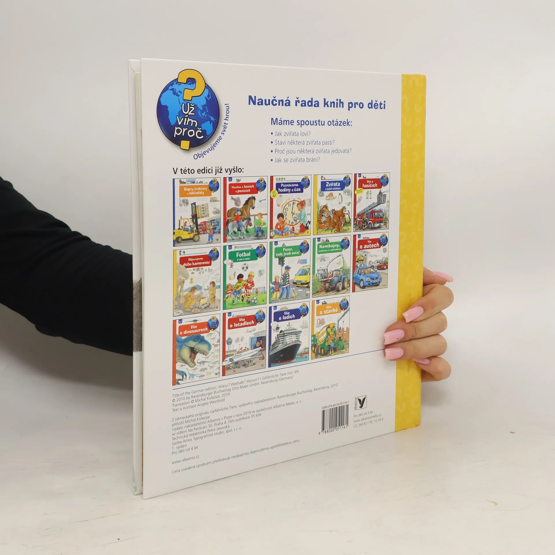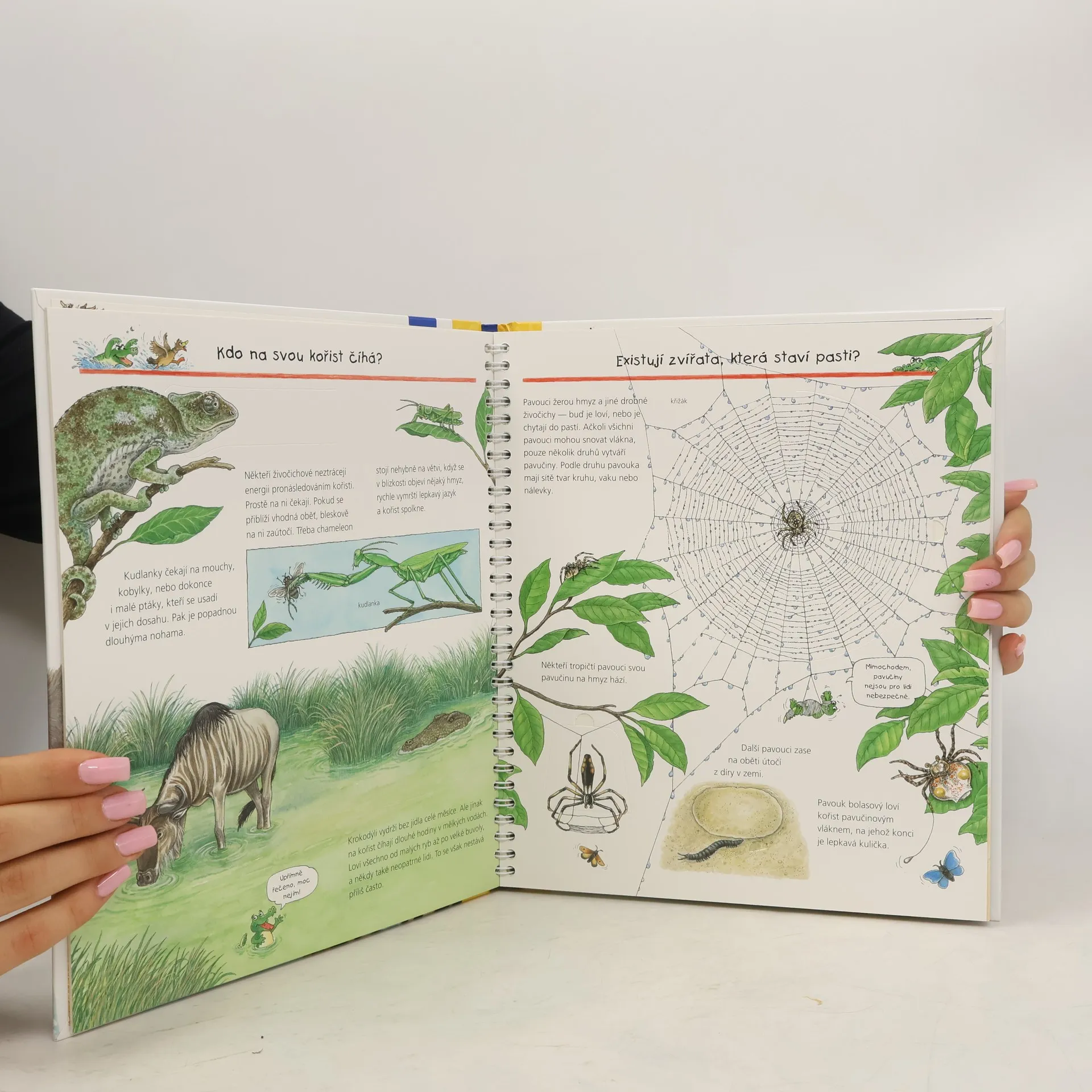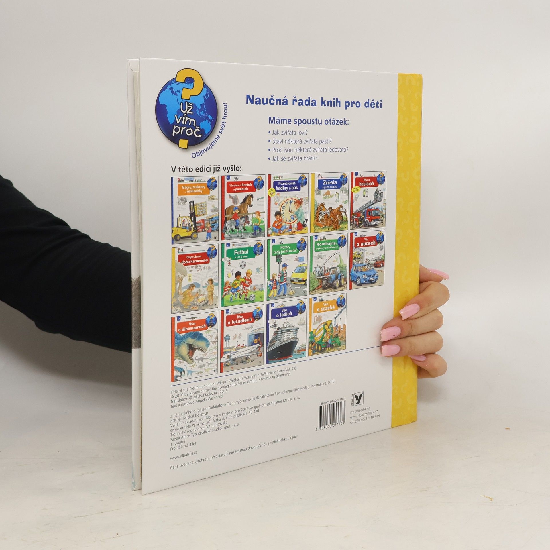 Nebezpečná zvířata, jako jsou žraloci, krokodýli, medvědi, jedovatí hadi a pavouci, nepřestávají děti fascinovat. V této knížce s otevíracími okénky se malí průzkumníci dozvědí všechno o tom, jak zvířata loví, jak se lovená zvířata naopak brání napadení, kteří lovci si staví pasti a která zvířata jsou nejnebezpečnější. Díky odkrývání nečekaných detailů pod okénky je poznávání přírody úžasným dobrodružstvím.