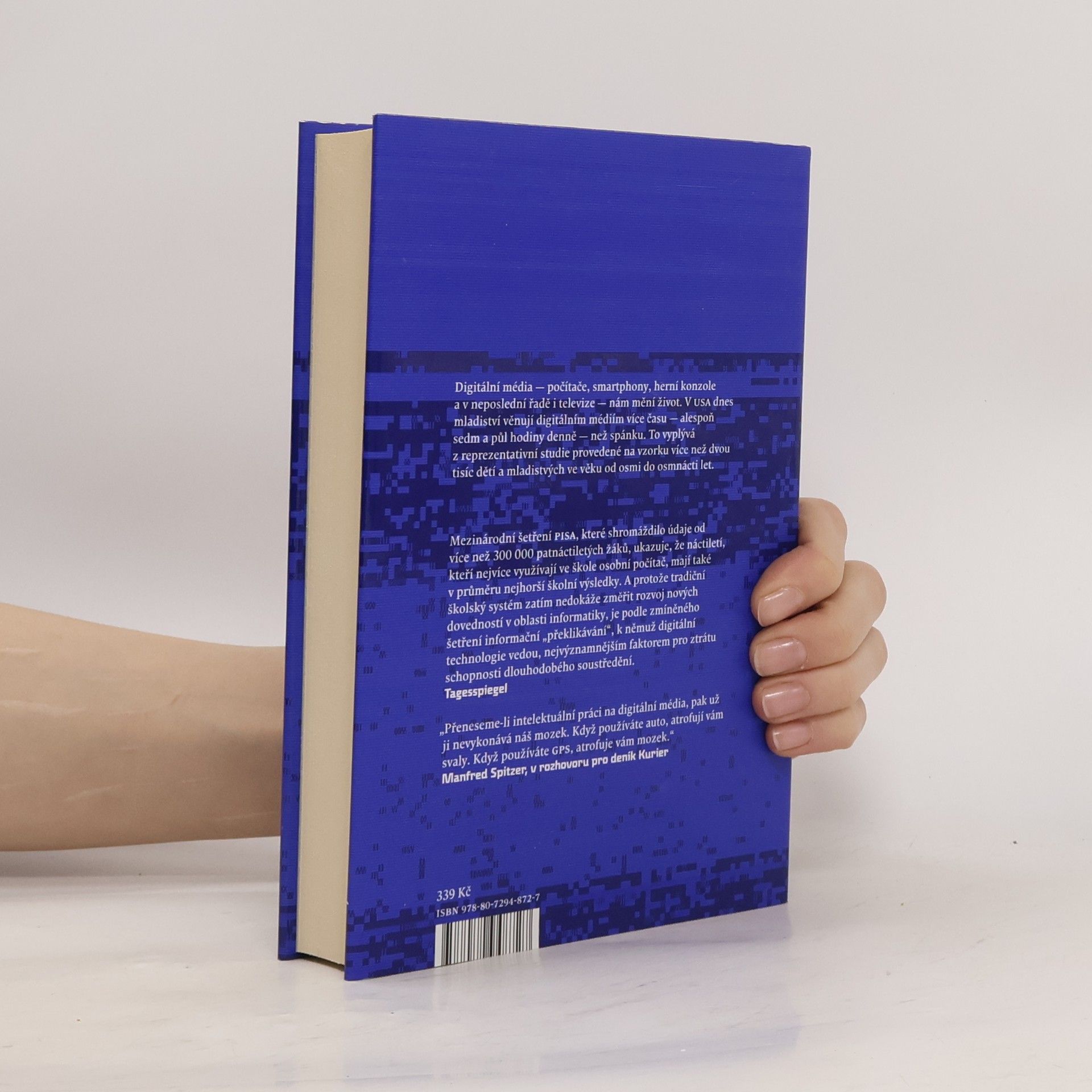Jak připravujeme sami sebe a naše děti o rozum. Digitální média nás zbavují nutnosti vykonávat duševní práci. To, co jsme dřív prováděli jednoduše pomocí rozumu, nyní obstarávají počítače, smartphony, organizéry a navigace. To s sebou nese nezměrné nebezpečí, říká neurovědec Manfred Spitzer. Výsledky výzkumu, které zmiňuje, jsou alarmující. Na digitálních médiích vzniká závislost. V dlouhodobém horizontu poškozují tělo a především mysl. Jakmile přestaneme vyvíjet duševní úsilí, ochabuje nám paměť. Nervové spoje odumírají, ty nové nepřežijí, protože jich není třeba. U dětí a mladistvých vinou digitálních médií dramaticky klesá schopnost učení a výsledkem jsou poruchy pozornosti a čtení, úzkost a otupělost, poruchy spánku a deprese, nadváha, sklony k násilí a úpadek společnosti. Spitzer ukazuje obavy, jež tento vývoj vzbuzuje, a vybízí k omezení konzumního způsobu života, především u dětí, abychom zabránili digitální demenci. V Německu i anglosaském světě vzbudila kniha mimořádný ohlas jak mezi rodiči a pedagogy, tak i mezi odbornou veřejností, byť reakce byly často rozporuplné. Prodalo se jí přes 200 000 výtisku, několik měsíců se udržela na první příčce bestselleru týdeníku Spiegel a práva na vydání byla prodána zatím do devíti zemí.