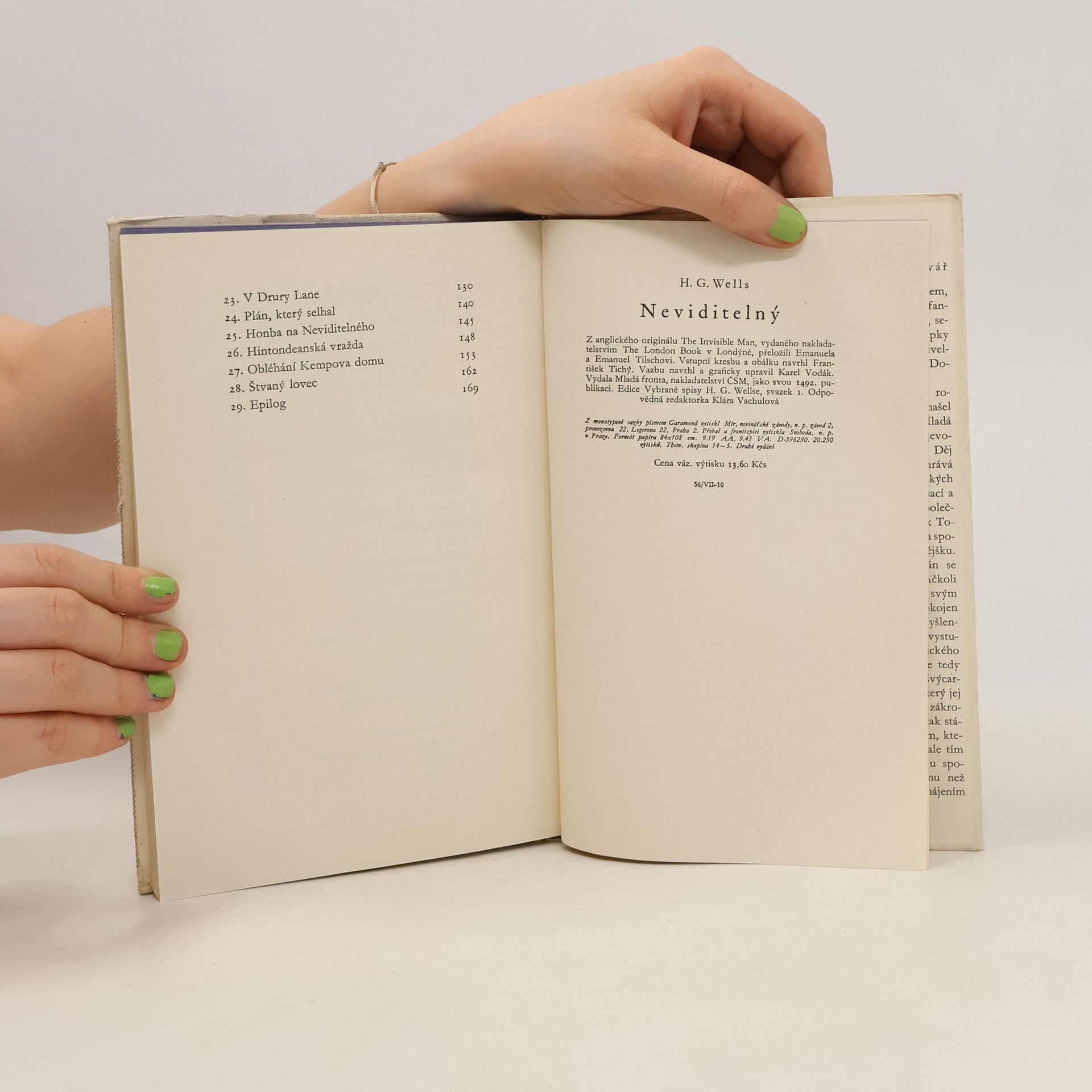 Proslulý autor utopických románů líčí v tomto fantastickém příběhu osudy mladého přírodovědce Griffina, který objeví tajemství neviditelnosti a vyzkouší je sám na sobě. Neviditelný a nepolapitelný bloudí nejprve Londýnem, pak anglickým venkovem, šíří kolem sebe zmatek a hrůzu, stává se štvancem, propadá zuřivosti, která se mu nakonec stane osudnou...