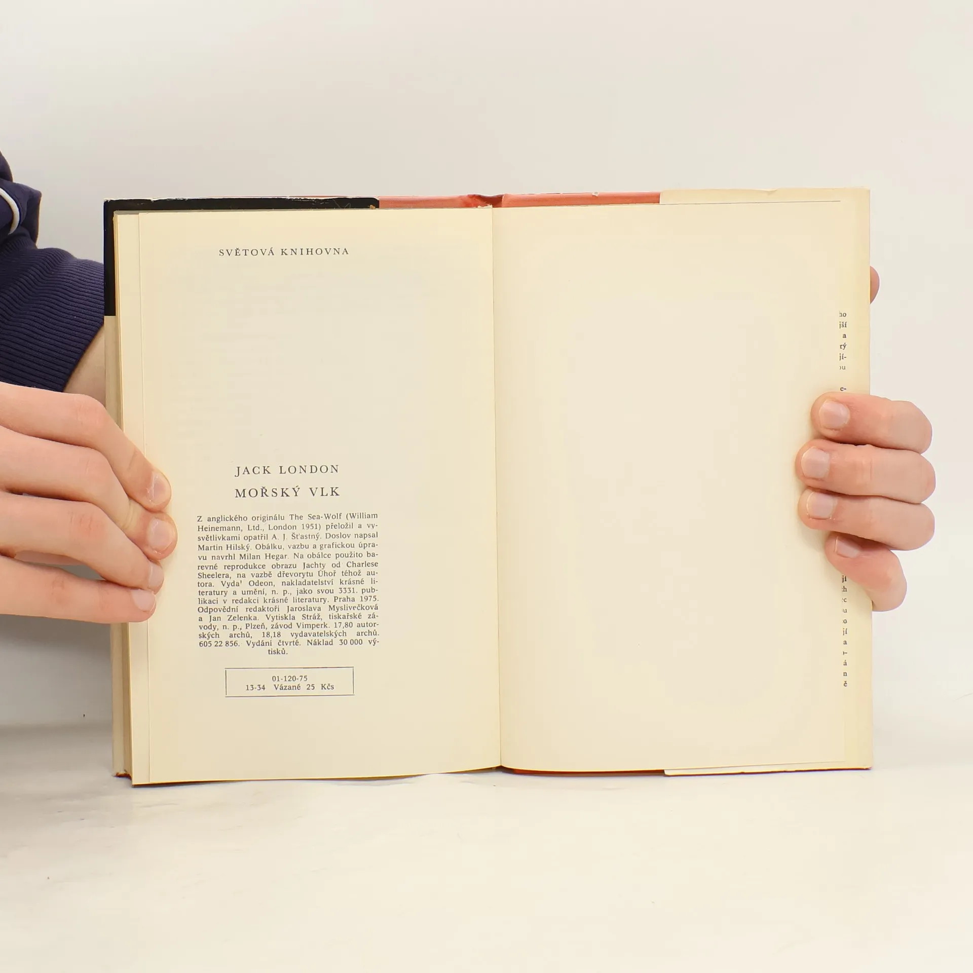 Napínavý a vzrušující příběh z tuleňářské lodi, jíž velí krutý a egoistický kapitán Larsen. Intelektuál Humphrey Van Weyden se při ztroskotání parníčku přepravujícího cestující přes Sanfranciský záliv dostává na palubu Přízraku, lodi vedené despotickým kapitánem Vlkem Larsenem mířící k japonským břehům na lov tuleňů. Humprey musí poprvé v životě tvrdě pracovat a vydobýt si v prostředí, kde vládne jen právo silnějšího, důstojné postavení. Obálku s použitím barevné reprodukce obrazu Charlese Sheelera a vazbu s dřevorytem téhož autora navrhl Milan Hegar.