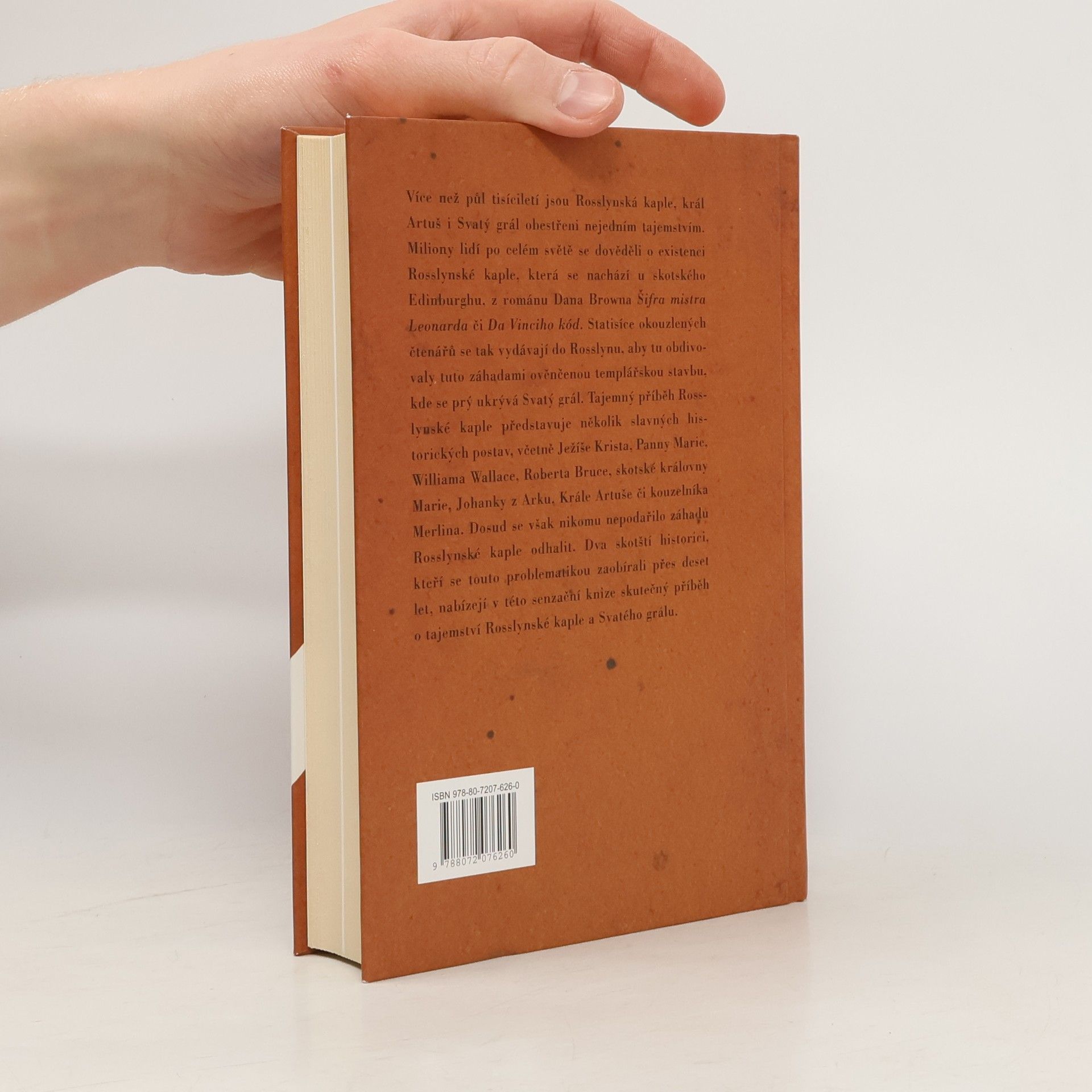 Podtitul: Uvedení Šifry mistra Leonarda na pravou míru Více než půl tisíciletí jsou Rosslynská kaple, král Artuš i Svatý grál obestřeni nejedním tajemstvím. Miliony lidí po celém světě se dověděli o existenci Rosslynské kaple, která se nachází u skotského Edinburghu, z románu Dana Browna Šifra mistra Leonarda či Da Vinciho kód. Statisíce čtenářů se tak vydávají do Rosslynu, aby tu obdivovaly tuto záhadami ověnčenou templářskou stavbu, kde se prý ukrývá Svatý grál. Tajemný příběh Rosslynské kaple představuje několik slavných historických postav, včetně Ježíše Krista, Panny Marie, Williama Wallace, Roberta Bruce, skotské královny Marie, Johanky z Arku, Krále Artuše či kouzelníka Merlina. Dosud se však nikomu nepodařilo záhadu Rosslynské kaple odhalit. Dva skotští historici, kteří se touto problematikou zaobírali přes deset let, nabízejí v této senzační knize skutečný příběh o tajemství Rosslynské kaple a Svatého grálu.