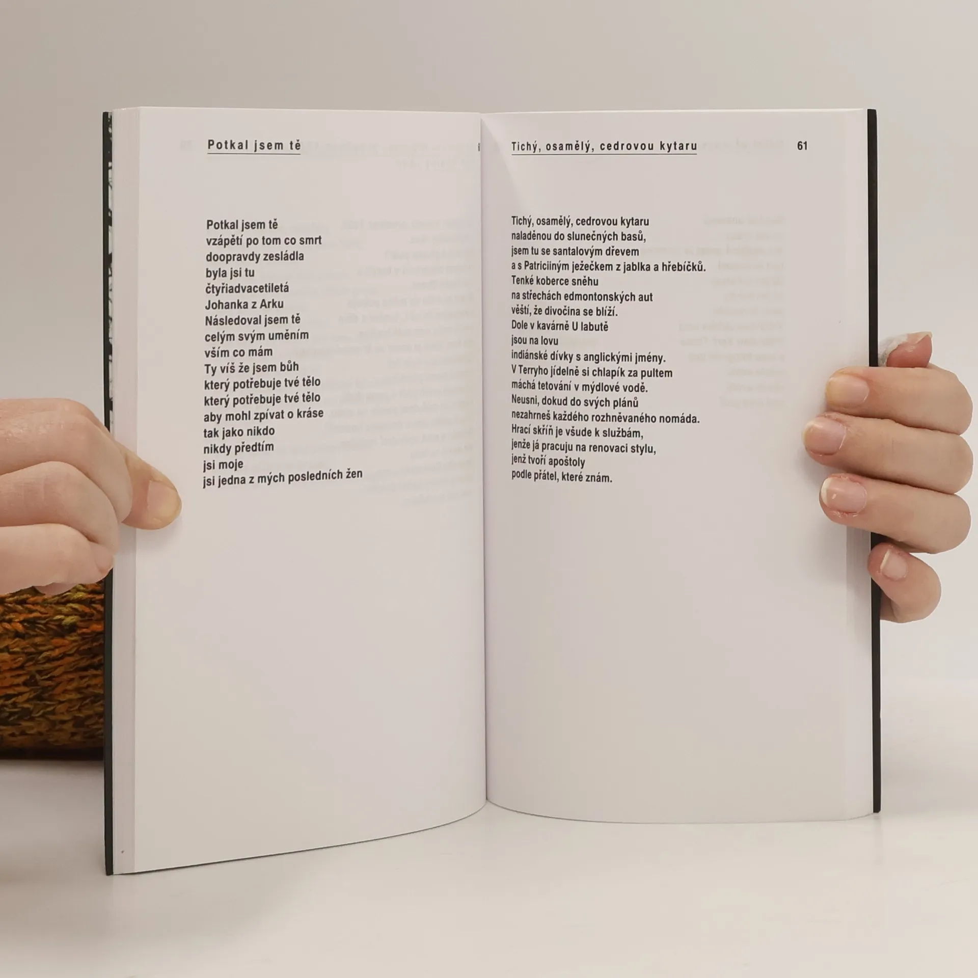 Výběr z básnického díla Leonarda Cohena obsahuje texty ze sbírek Porovnejme si mytologie (1956), Ročenka zem (1961), Květiny pro Hitlera (1964), Vybrané básně 1956-1968 (1968), Energie otroků (1972) a Smrt muže jedné ženy (1978).