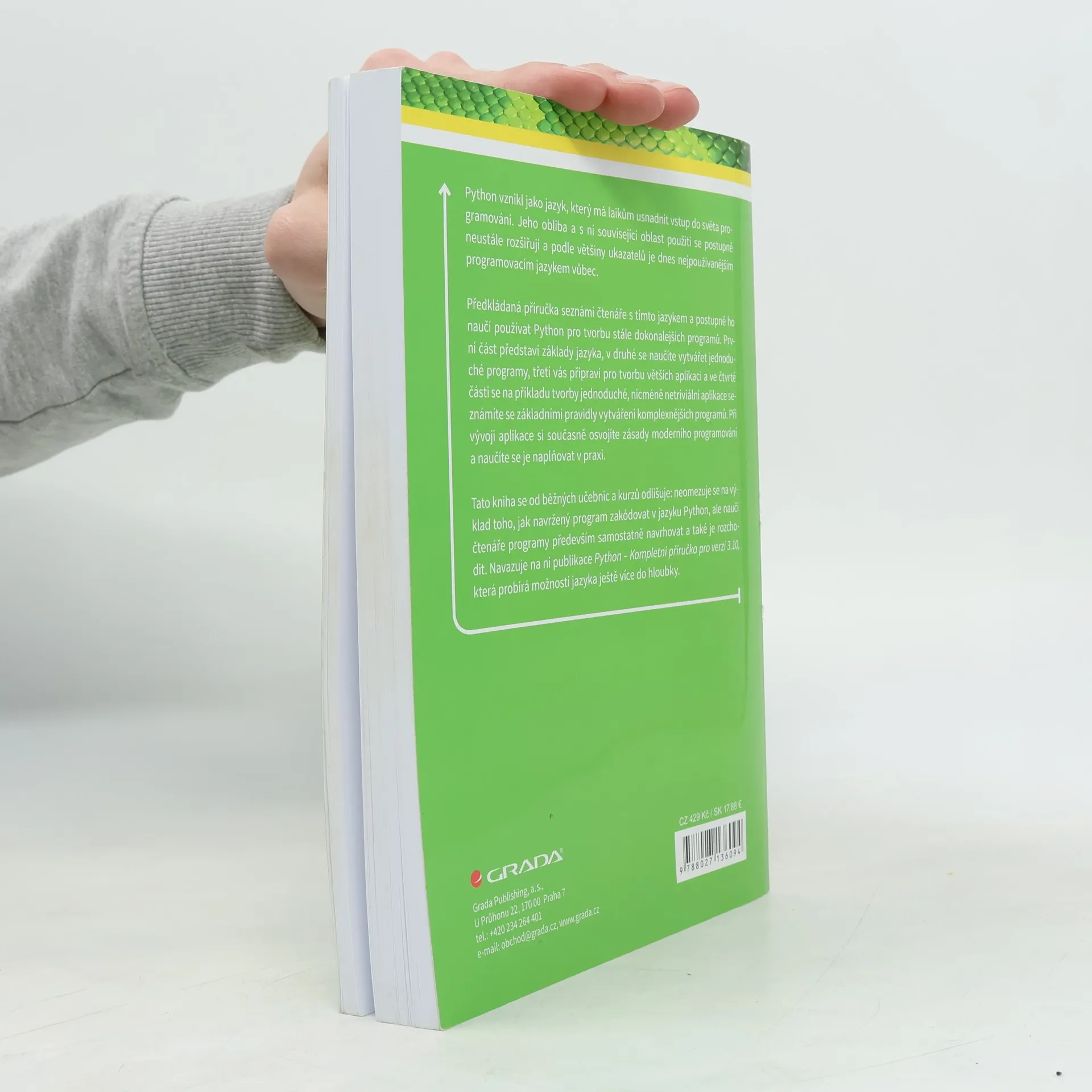 2., přepracované a rozšířené vydání. Python vznikl jako jazyk, který má laikům usnadnit vstup do světa programování. Jeho obliba a s ní související oblast použití se postupně neustále rozšiřují a podle většiny ukazatelů je dnes nejpoužívanějším programovacím jazykem vůbec. Předkládaná příručka seznámí čtenáře s tímto jazykem a postupně ho naučí používat Python pro tvorbu stále dokonalejších programů. První část představí základy jazyka, v druhé se naučíte vytvářet jednoduché programy, třetí vás připraví pro tvorbu větších aplikací a ve čtvrté části se na příkladu tvorby jednoduché, nicméně netriviální aplikace seznámíte se základními pravidly vytváření komplexnějších programů. Při vývoji aplikace si současně osvojíte zásady moderního programování a naučíte se je naplňovat v praxi. Tato kniha se od běžných učebnic a kurzů odlišuje: neomezuje se na výklad toho, jak navržený program zakódovat v jazyku Python, ale naučí čtenáře programy především samostatně navrhovat a také je rozchodit. Navazuje na ni publikace Python – Kompletní příručka pro verzi 3.10, která probírá možnosti jazyka ještě více do hloubky.