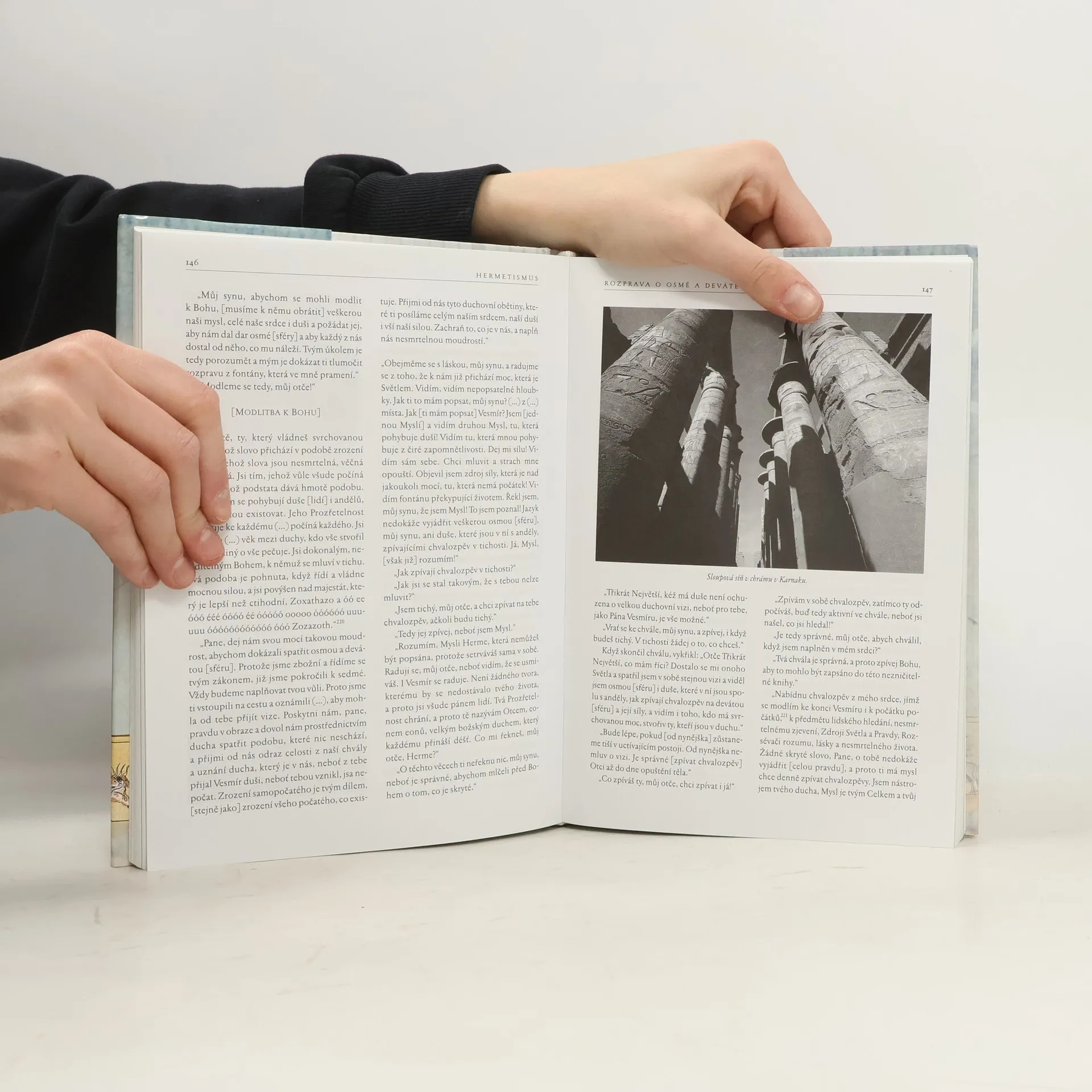 Definice Herma Trismegista; Staroegypské příběhy; Corpus hermeticum; Hrom: Dokonalá mysl; Bembínská deska; Stobaeus; O duši... Autor ve svém výkladu rozebírá nanejvýš egyptologickou tematiku. Táže se po původu hermetismu, snaží se na základě srovnávání výsledků dosavadního vědeckého bádání prokázat příslušnost tohoto duchovního směru k ostatním soustavám filozofických a kosmologických učení celkového dějinného odkazu myšlenkového světa lidských civilizací. Cílem teoretického úvodu je snaha navrátit hermetismu jeho myšlenkovou závažnost a pokus znovu jej uvést na ústřední místo - v historii mu nesčetněkrát odpírané - mezi zdroji lidské moudrosti a intelektuální touhy po poznávání světa. Druhou část knihy tvoří obsáhlý soubor překladů starověkých hermetických děl.